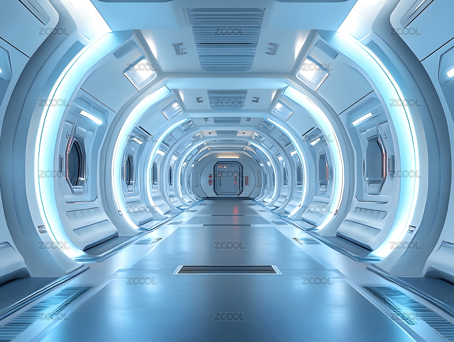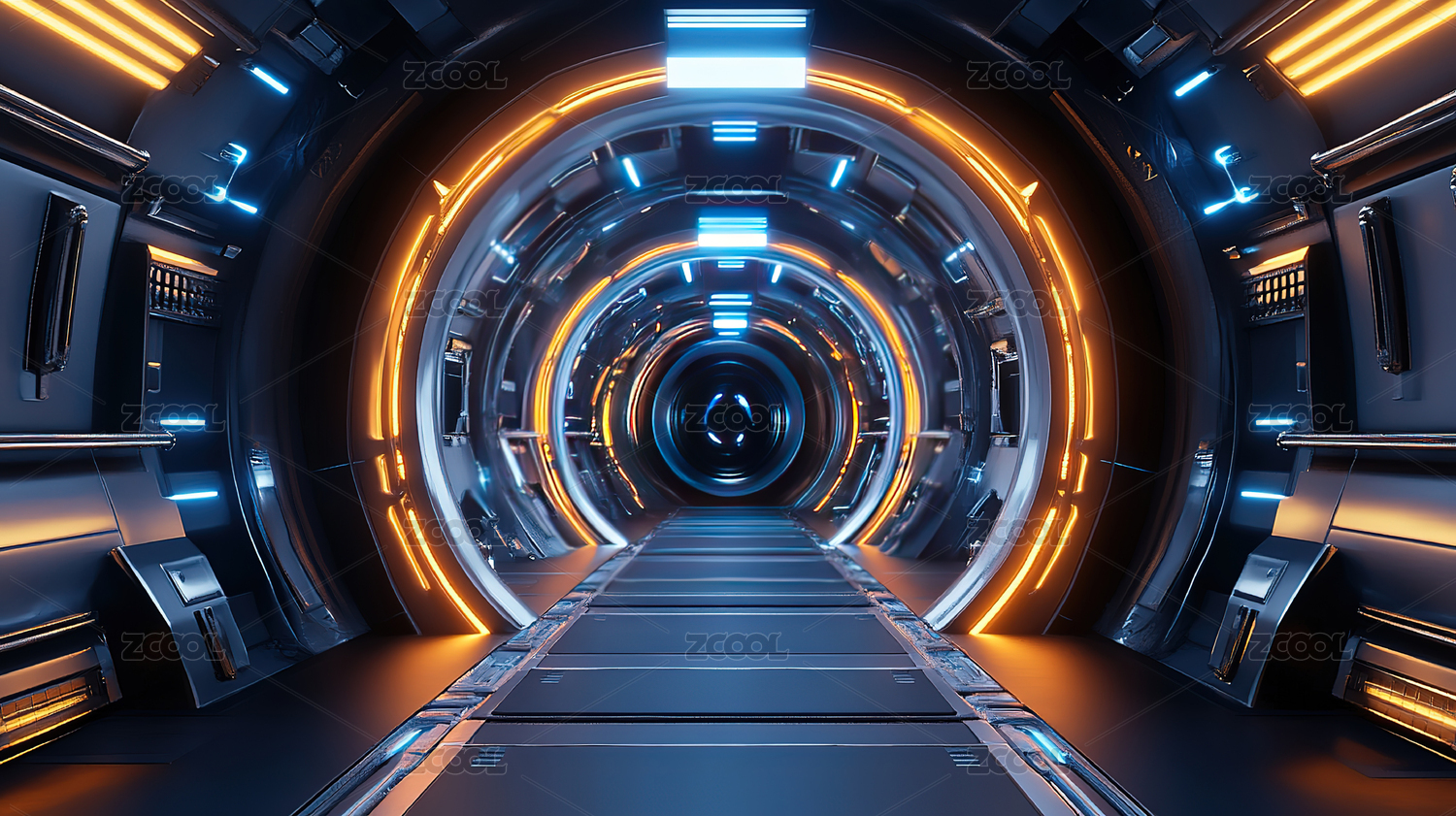 隧道,墙壁,室内,科学,未来,背景,光,实验室,3d渲染,太空船