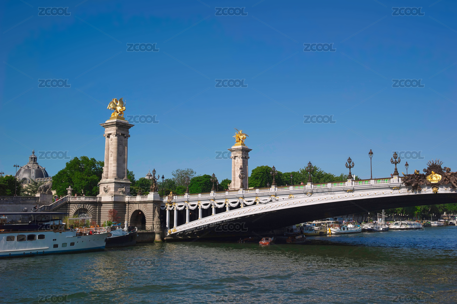 巴黎亚历山大三世桥俯瞰塞纳河及埃菲尔铁塔