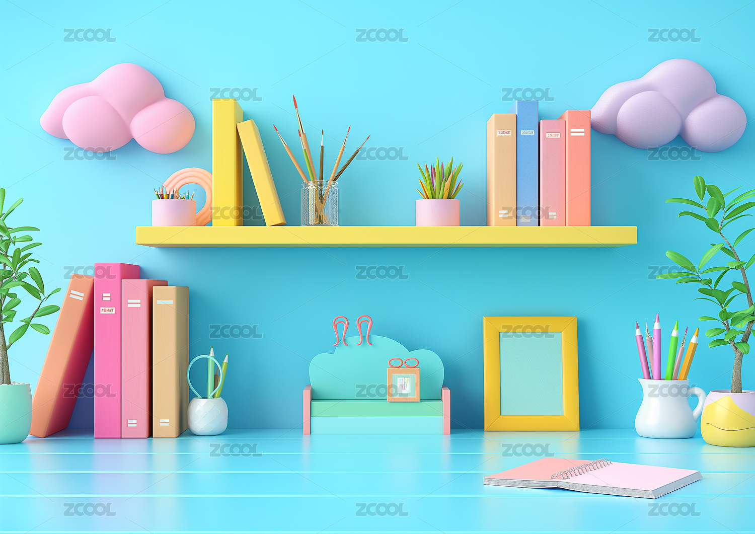 放满文具的卡通书桌