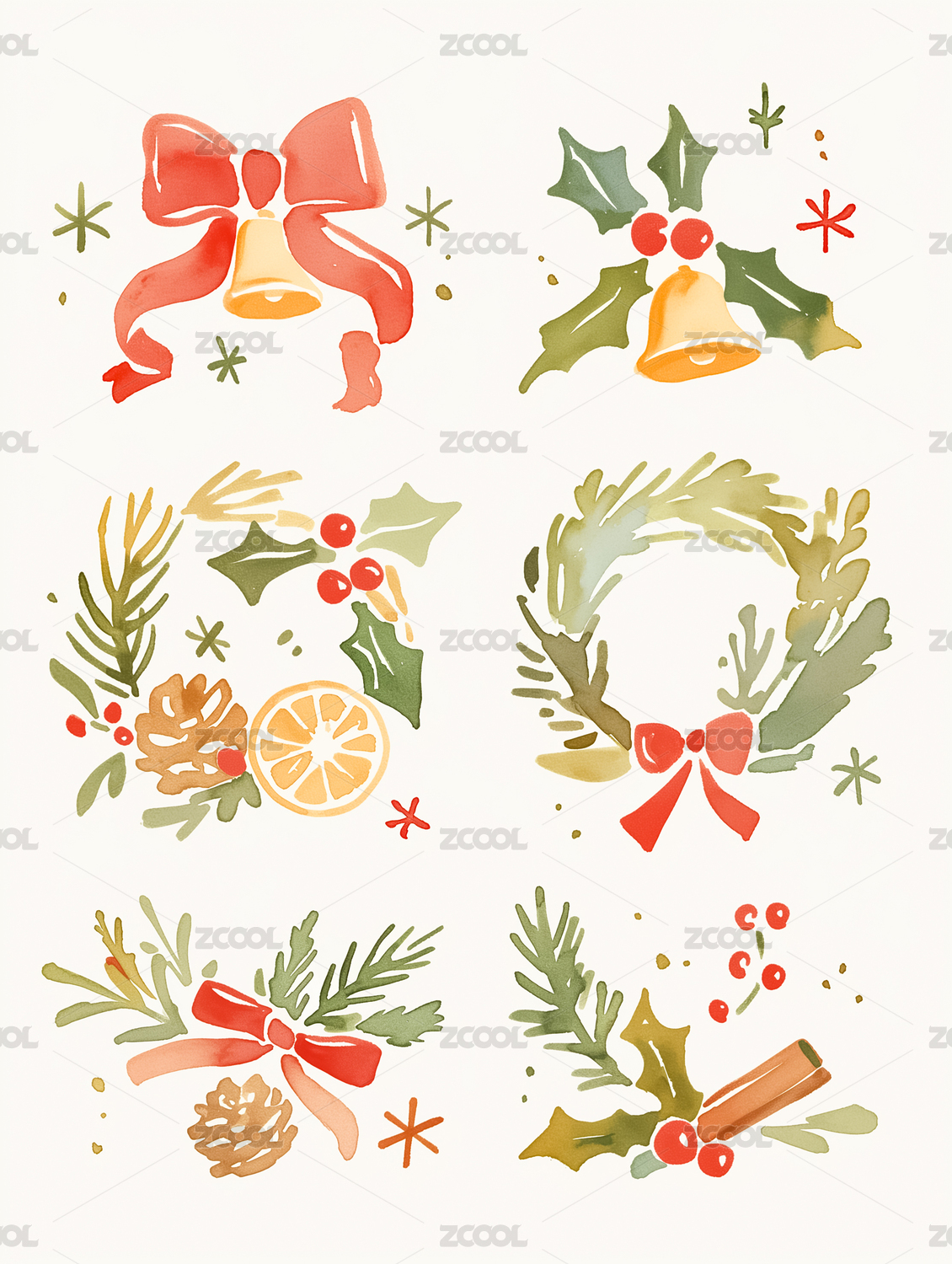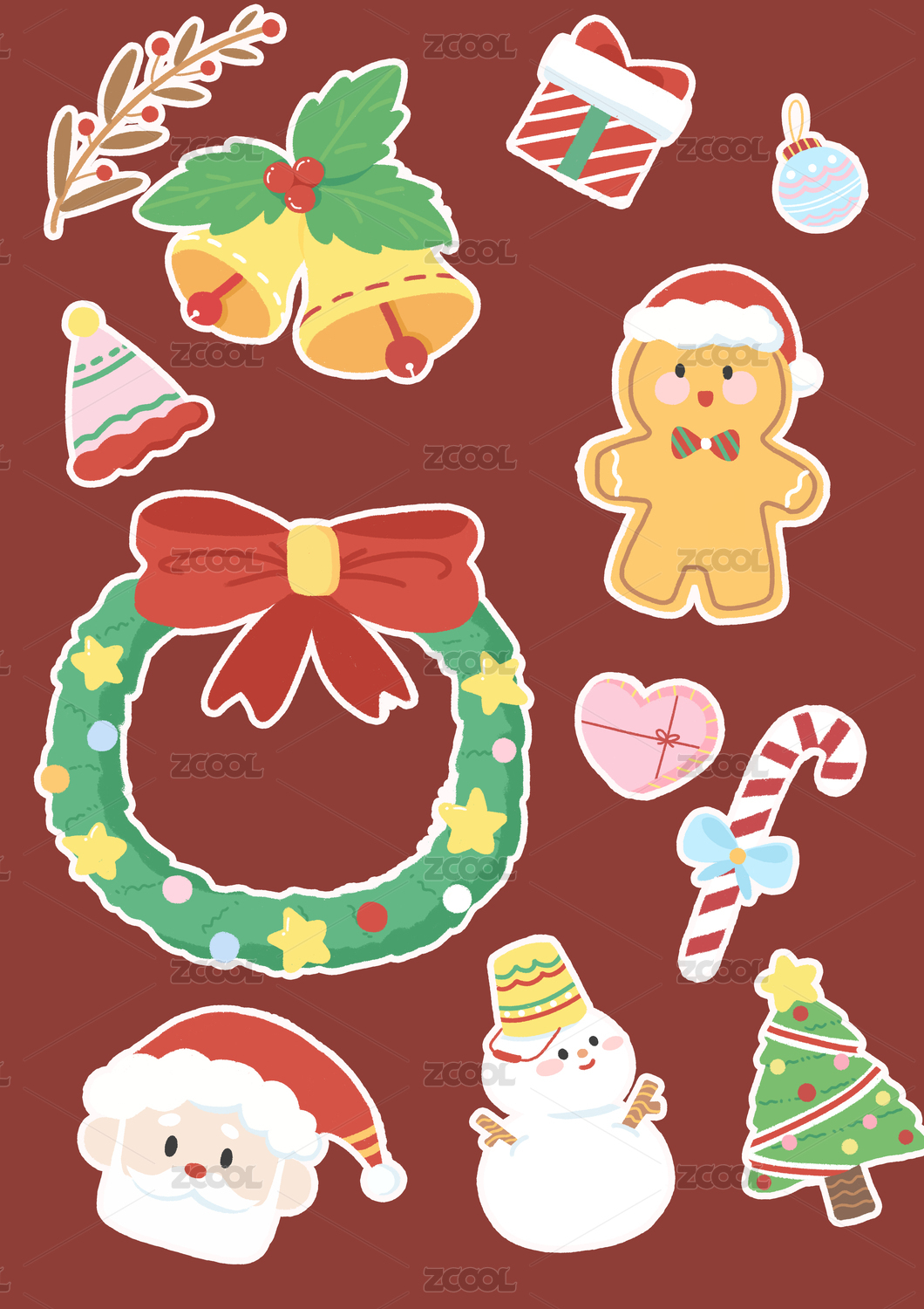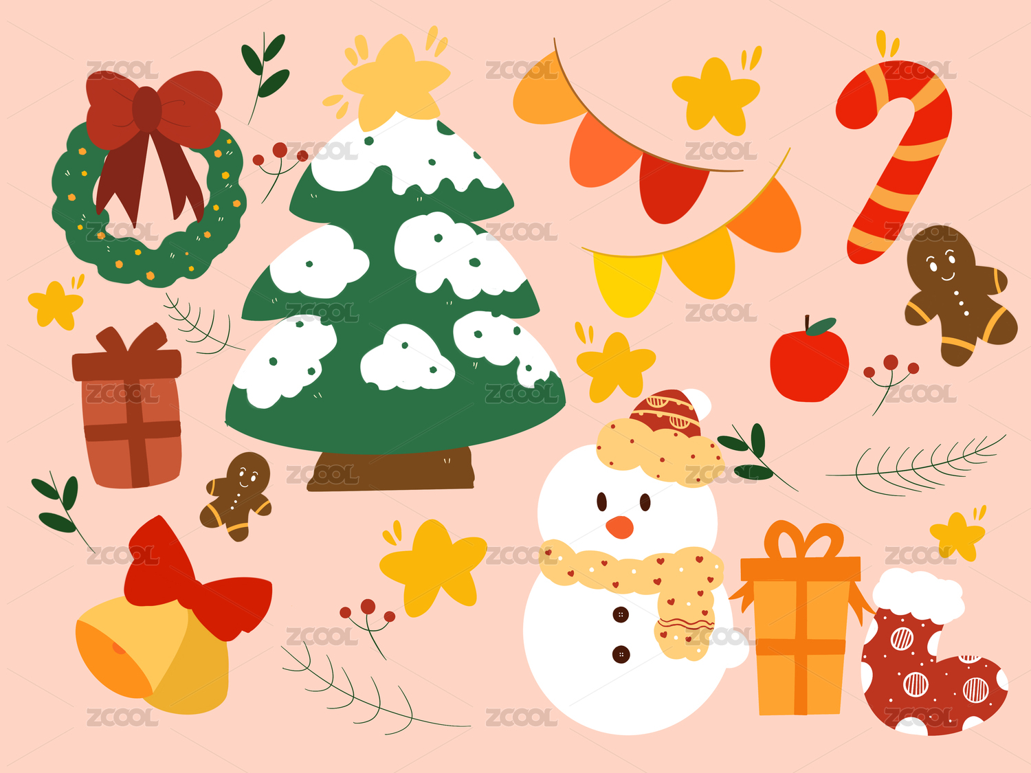 圣诞,插画,圣诞节,拐杖糖,圣诞树,雪人,雪花,礼物,圣诞袜,槲寄生