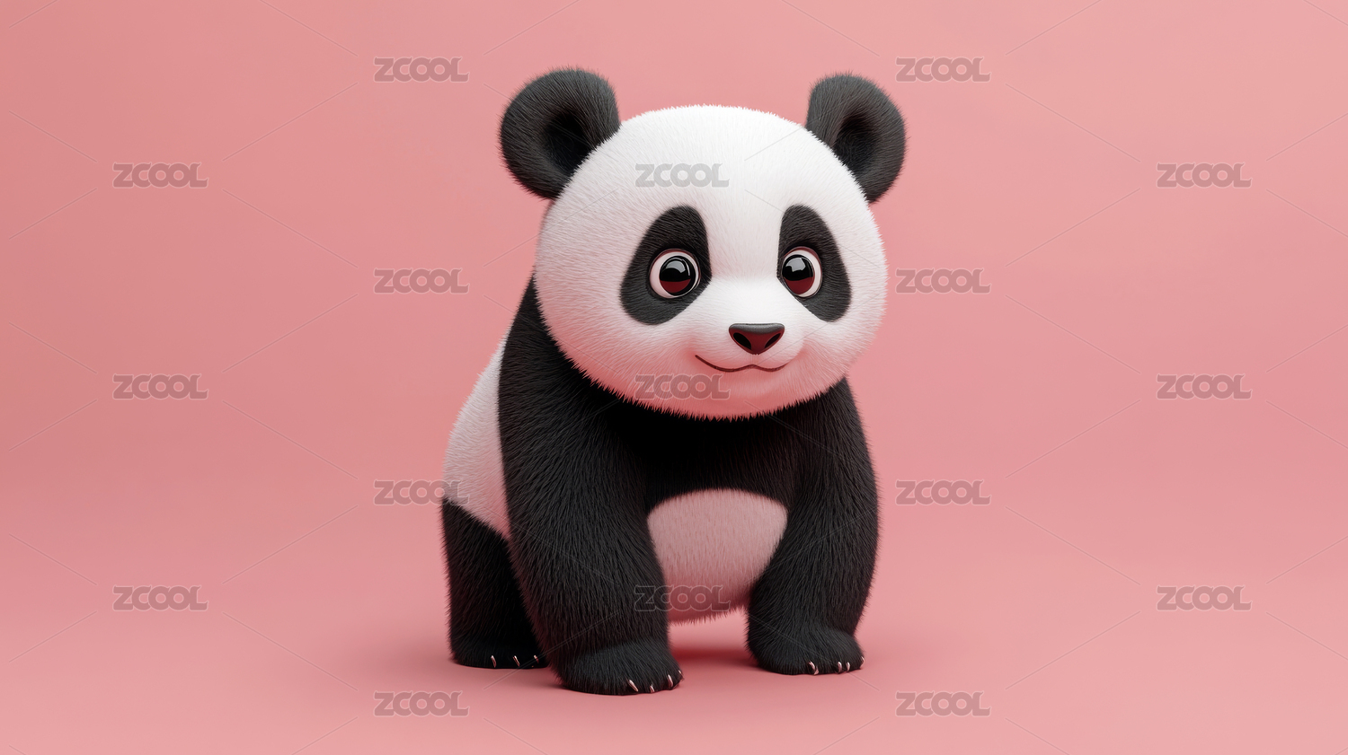 3D,卡通,动物,三维,立体,背景,插图,渲染,熊猫,大熊猫
