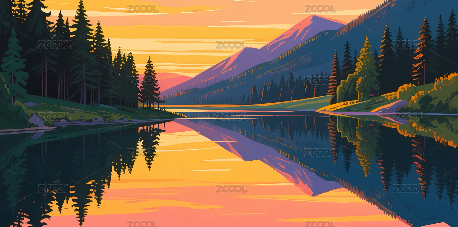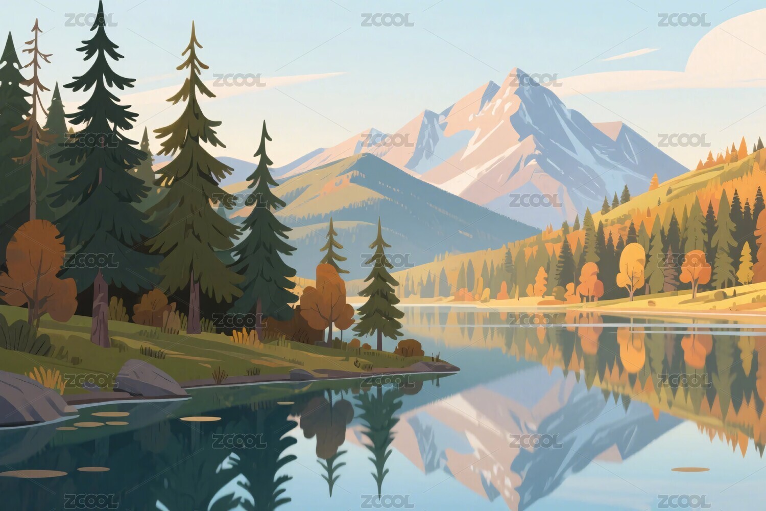 插画,卡通,风景,风光,大自然,背景,场景,壁纸,景点,湖面