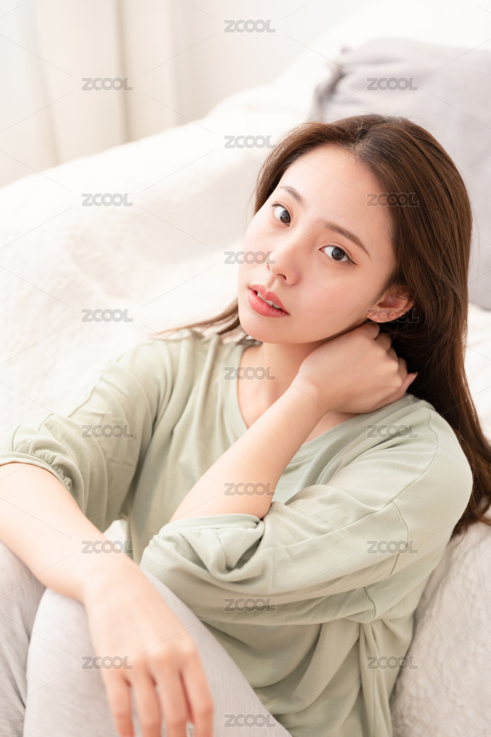 看镜头,在家,放松,手机,电话,使用手机,发消息,坐着,年轻,房间