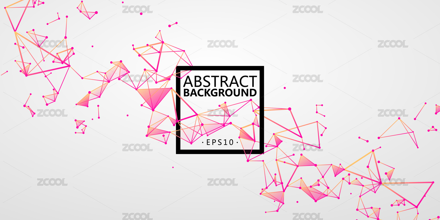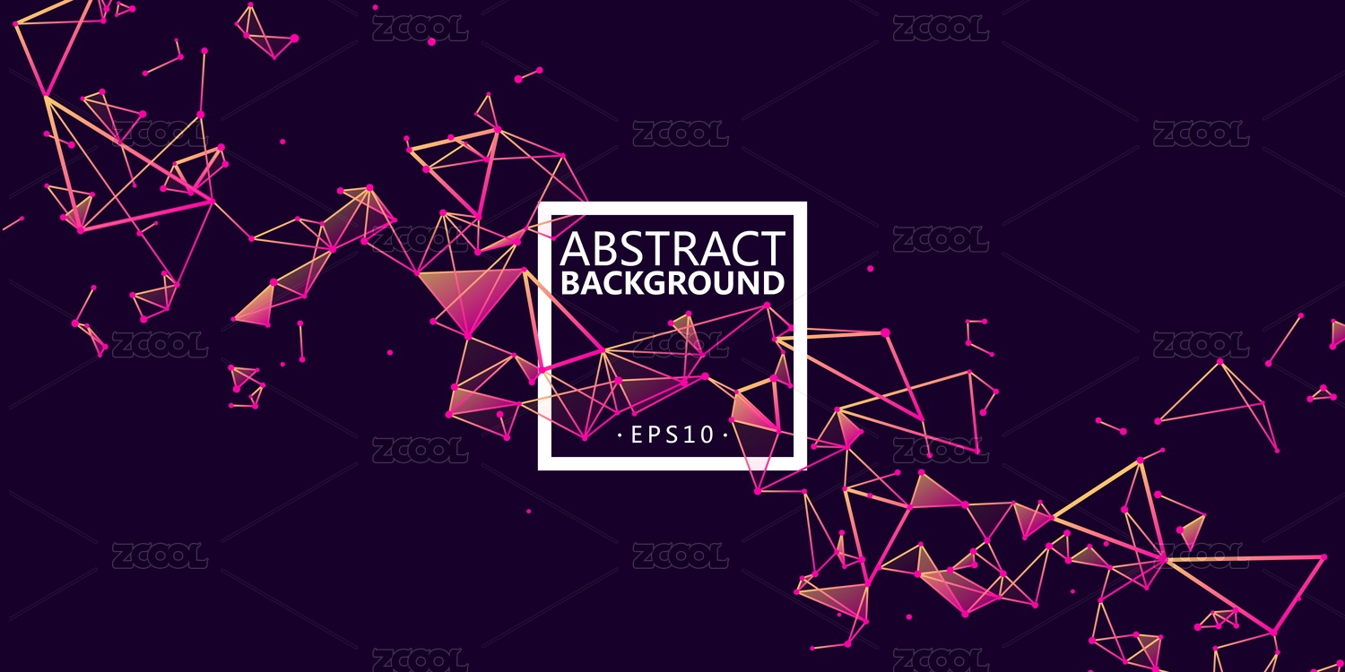 互联网技术的抽象图形、通过点线面链接的抽象图、科技背景图、粉色方形。