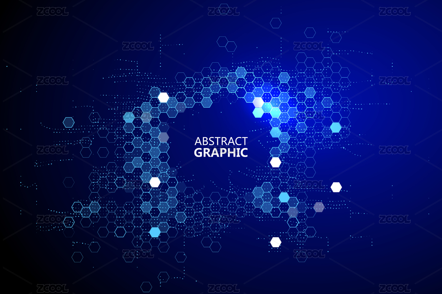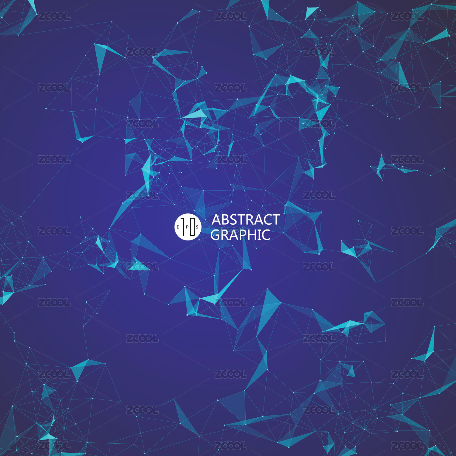 蓝色科幻背景图、抽象矢量点线面组合图形、科技图。