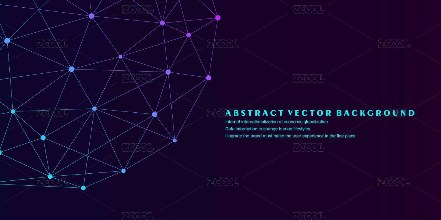 互联网技术、通过点线面链接的抽象图、科技背景图、紫色矩形。;