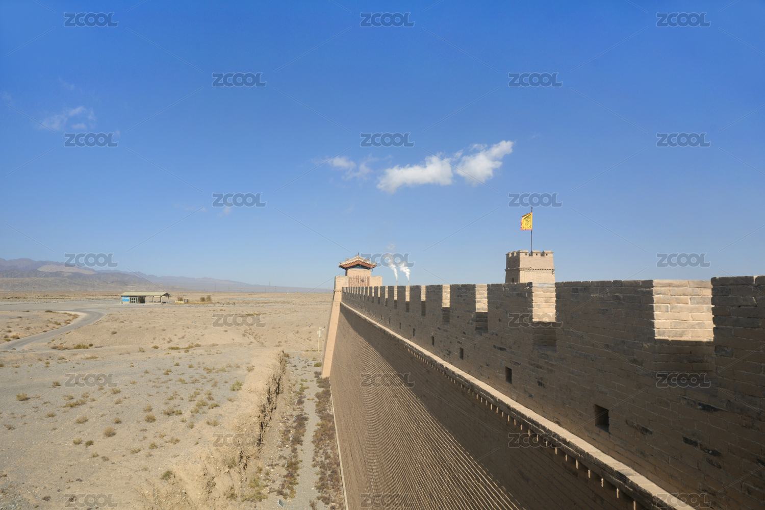 甘肃嘉峪关长城城墙上的角楼和箭楼