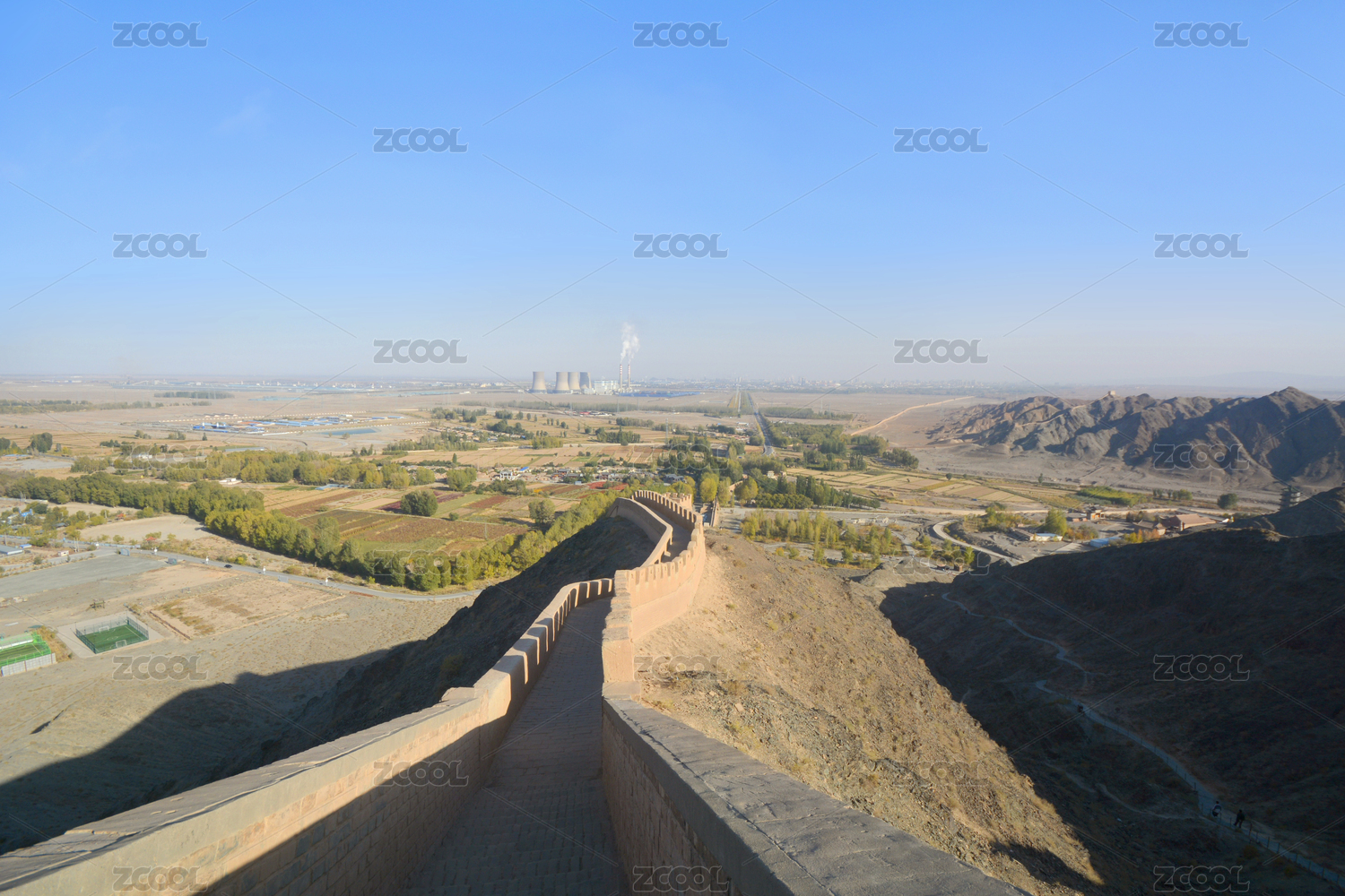 夏季甘肃省嘉峪关旅游景区的长城远景图