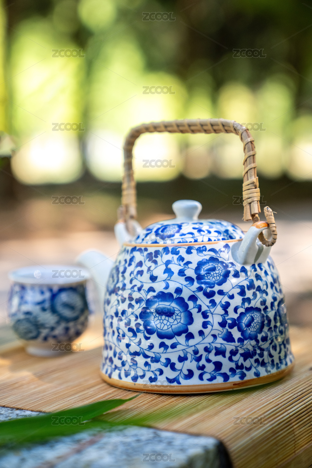 户外唯美青花瓷茶壶