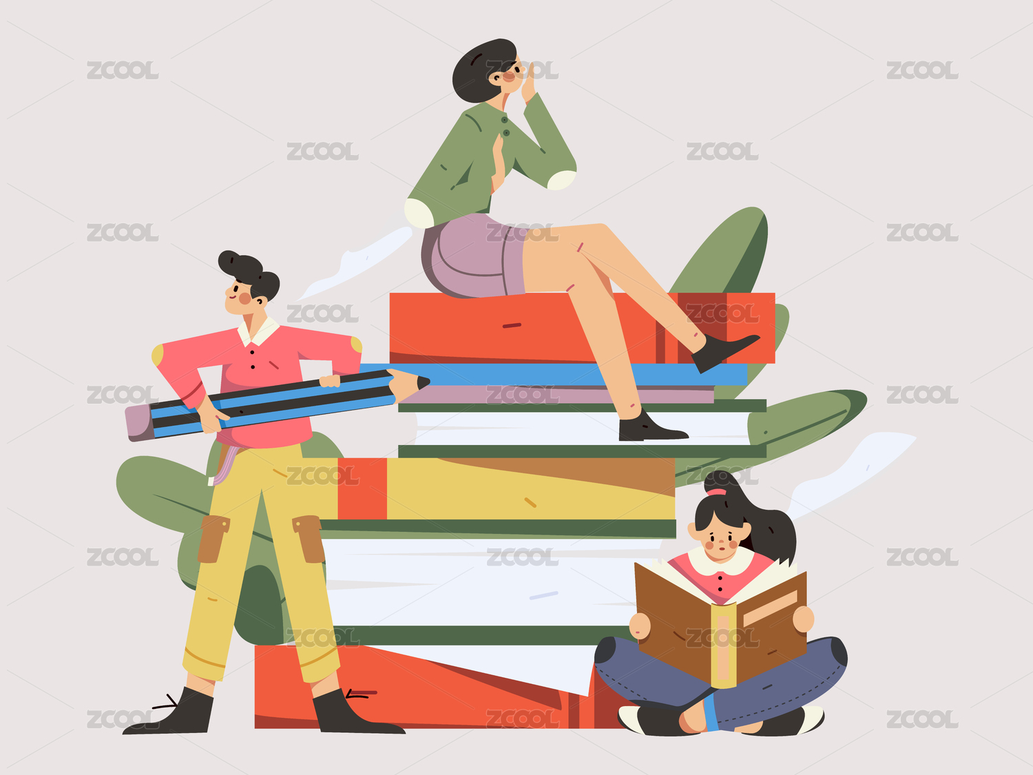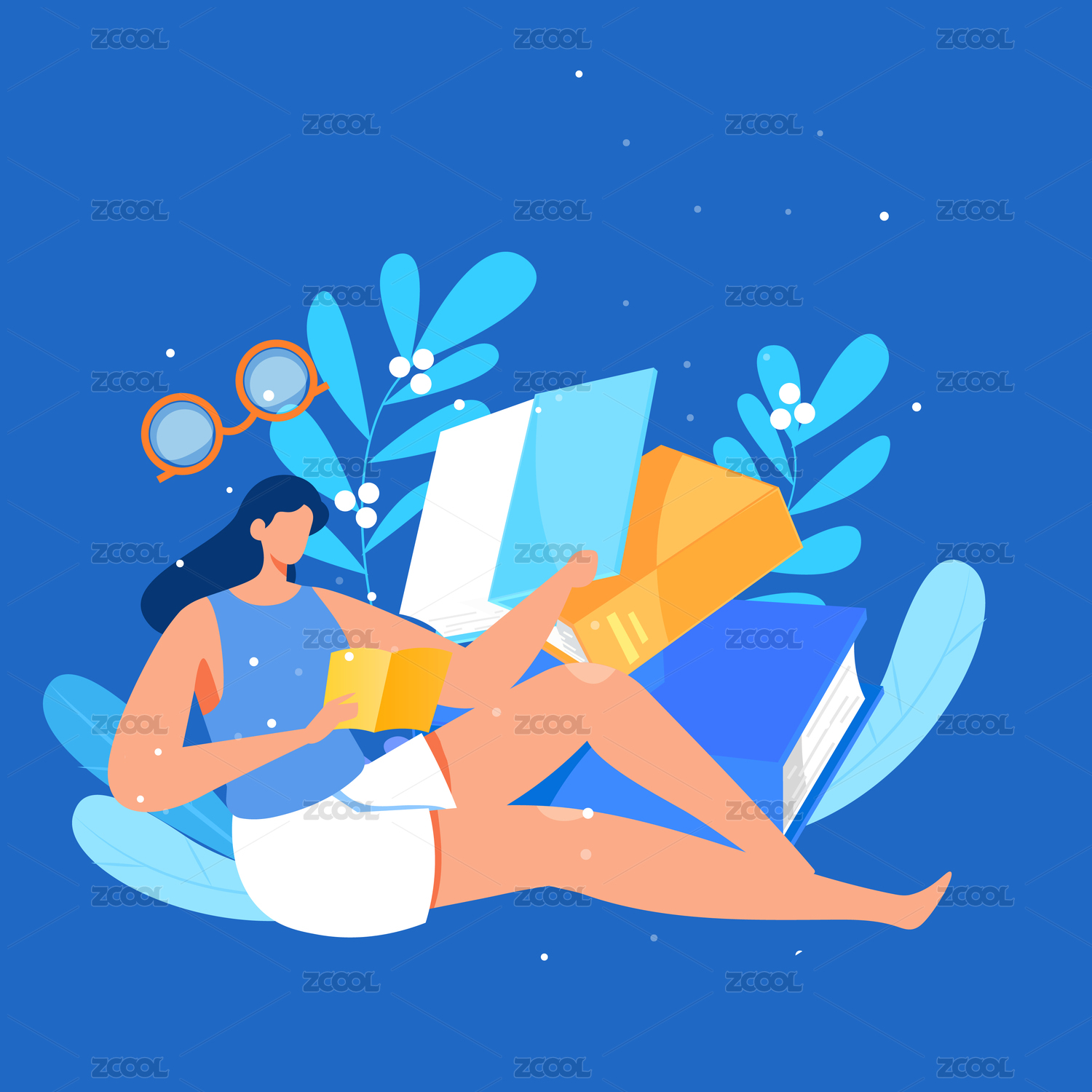 阅读女孩, 矢量扁平人物场景创意概念插画