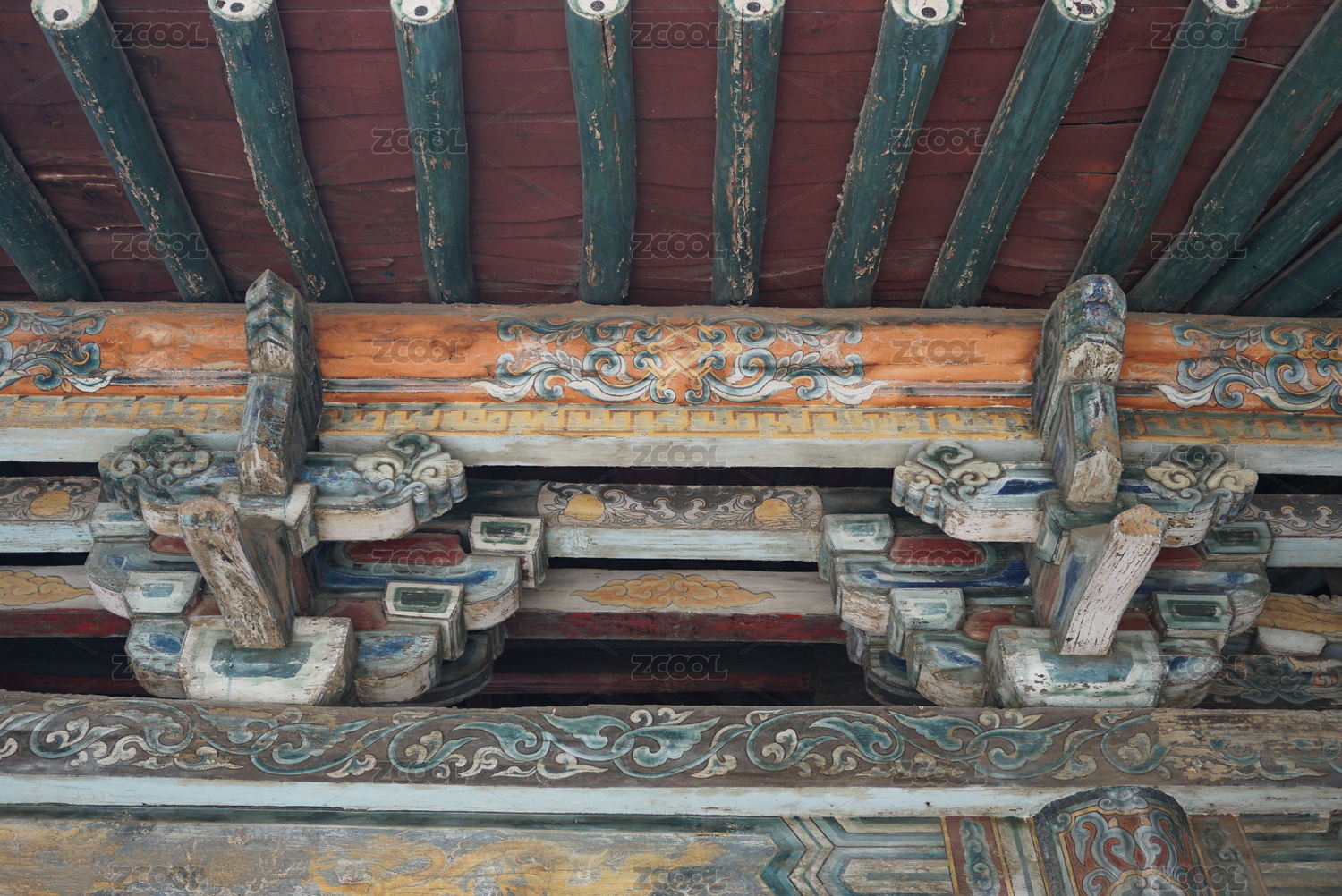 中国故宫的斗拱木结构彩绘