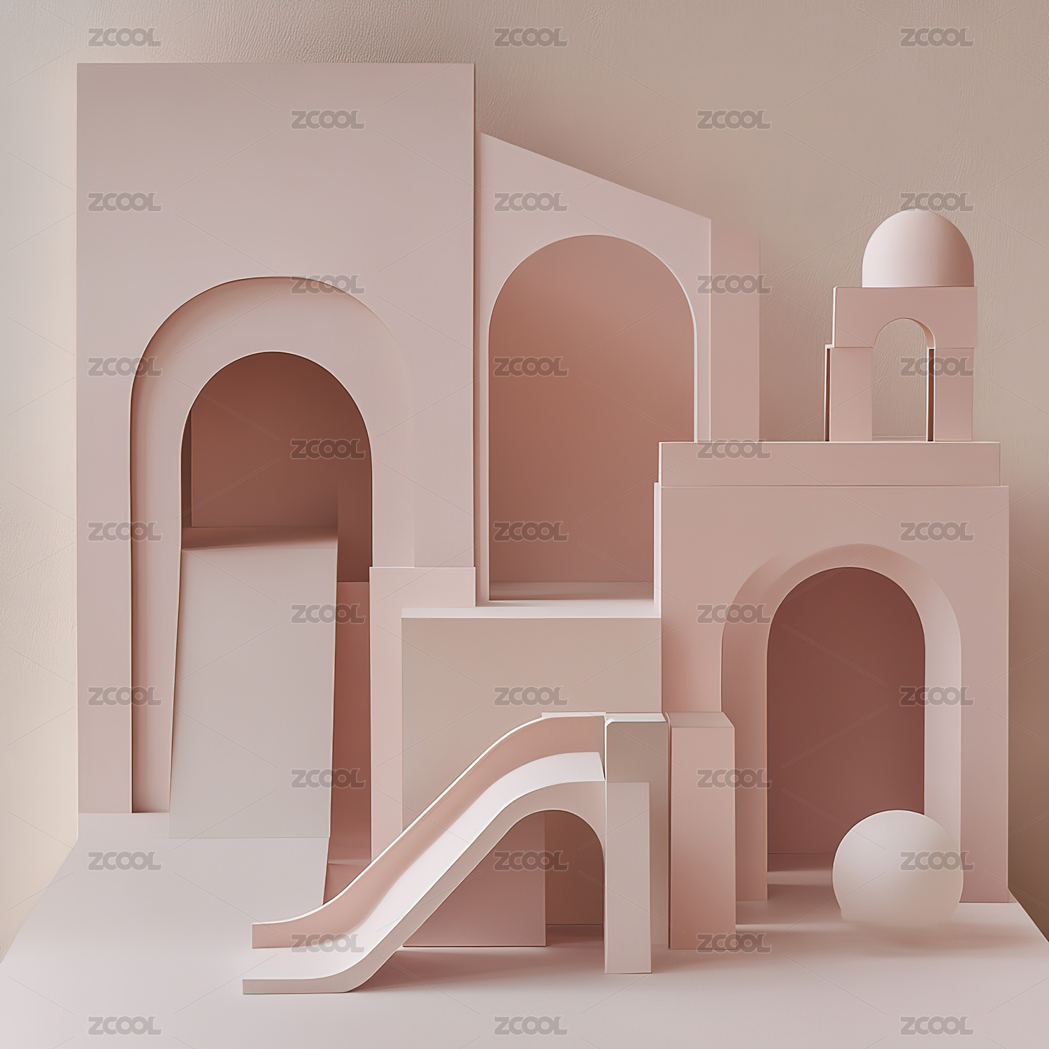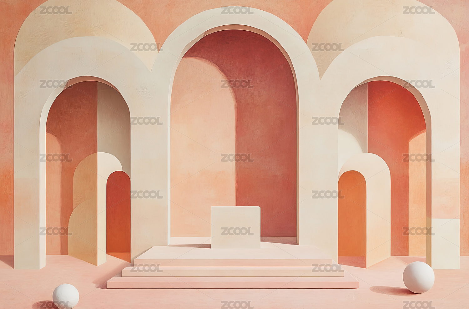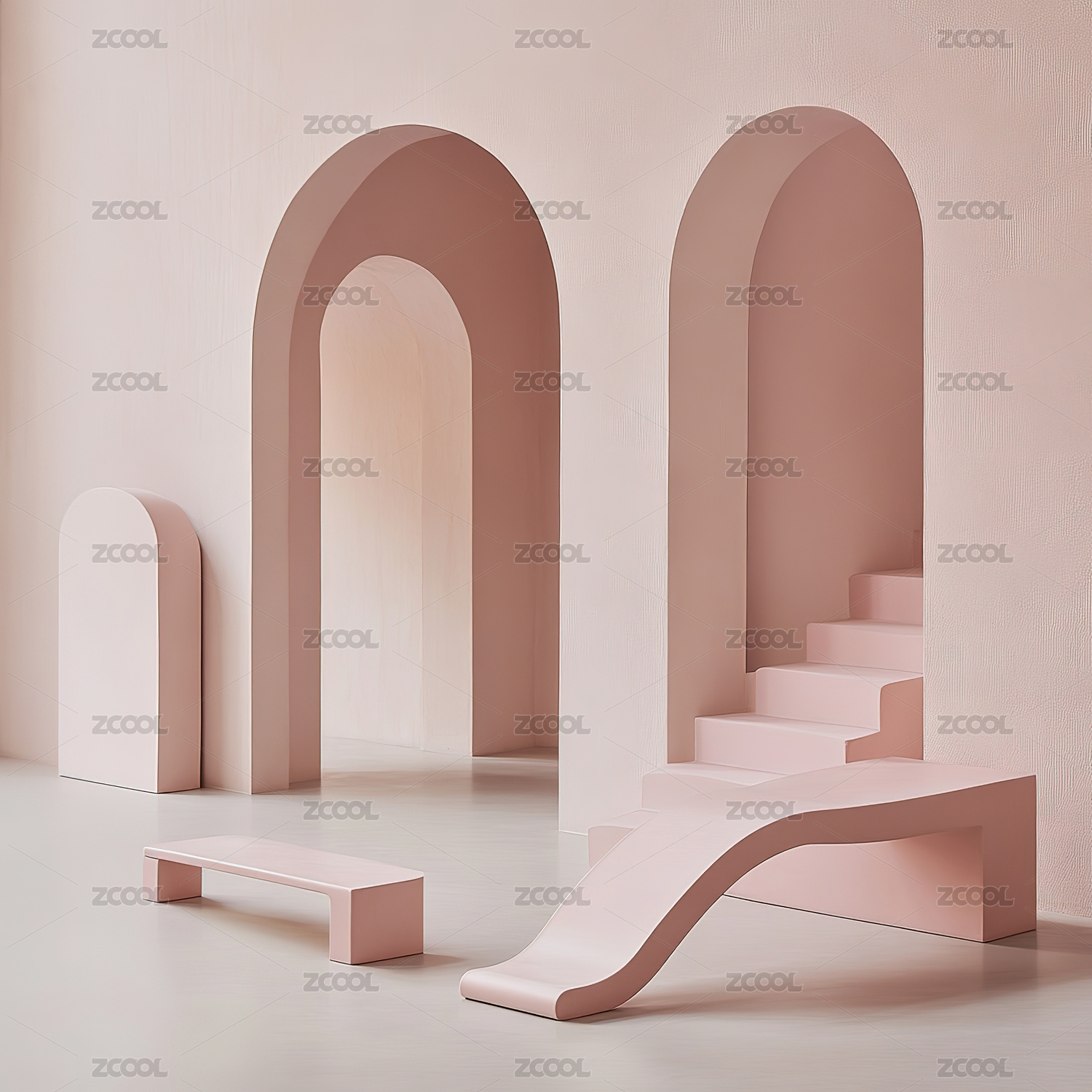 浅粉色,拱门,台阶,阶梯,楼梯,现代,线条,简洁,和谐
