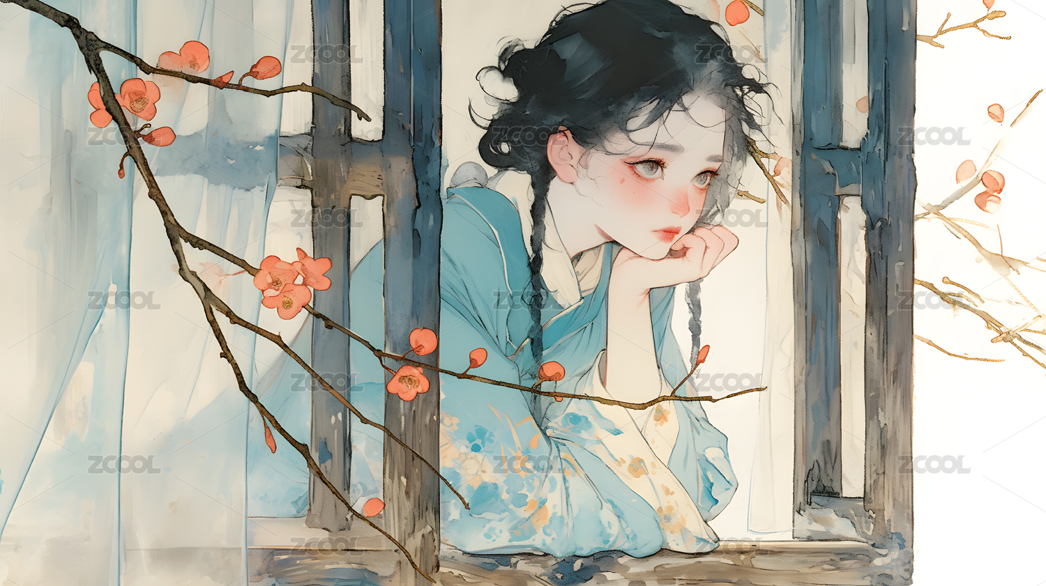 AIGCFG,中国风,水墨,插画,中式风格,人,人物
