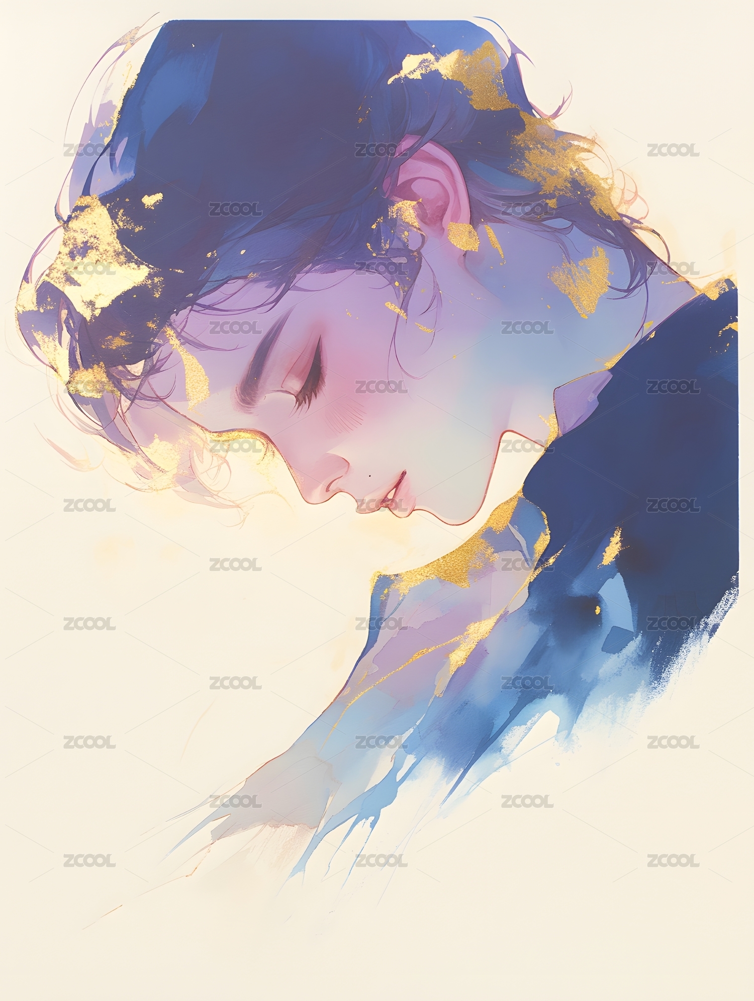 水彩秋天蓝天侧脸