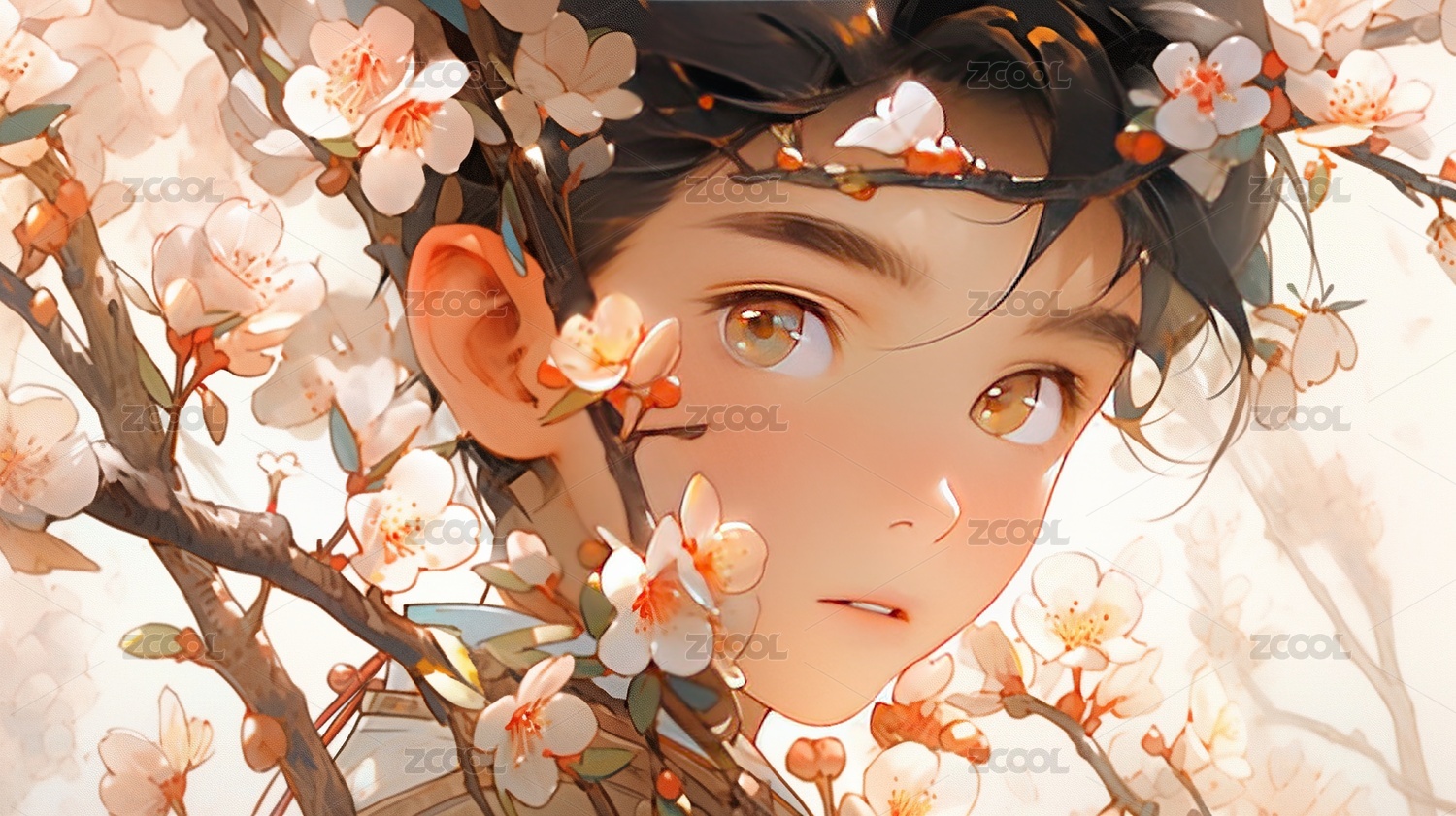 古代国风樱花下的男孩
