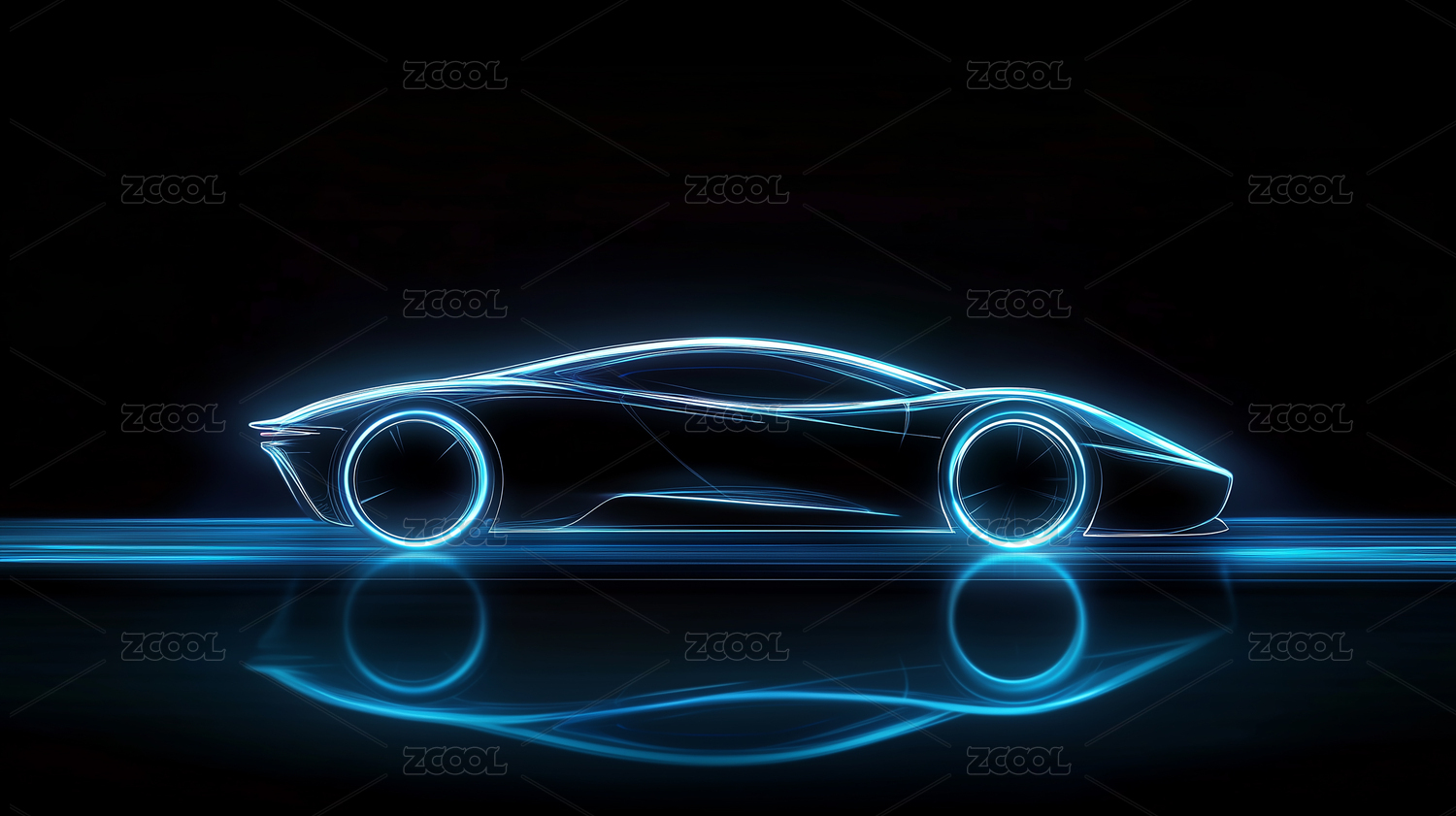 赛博朋克科技未来汽车抽象霓虹发光概念插图