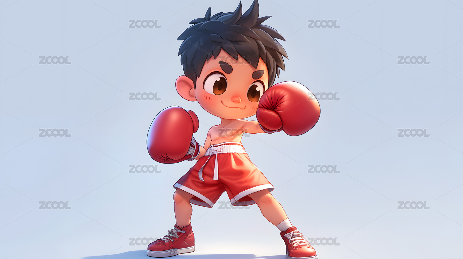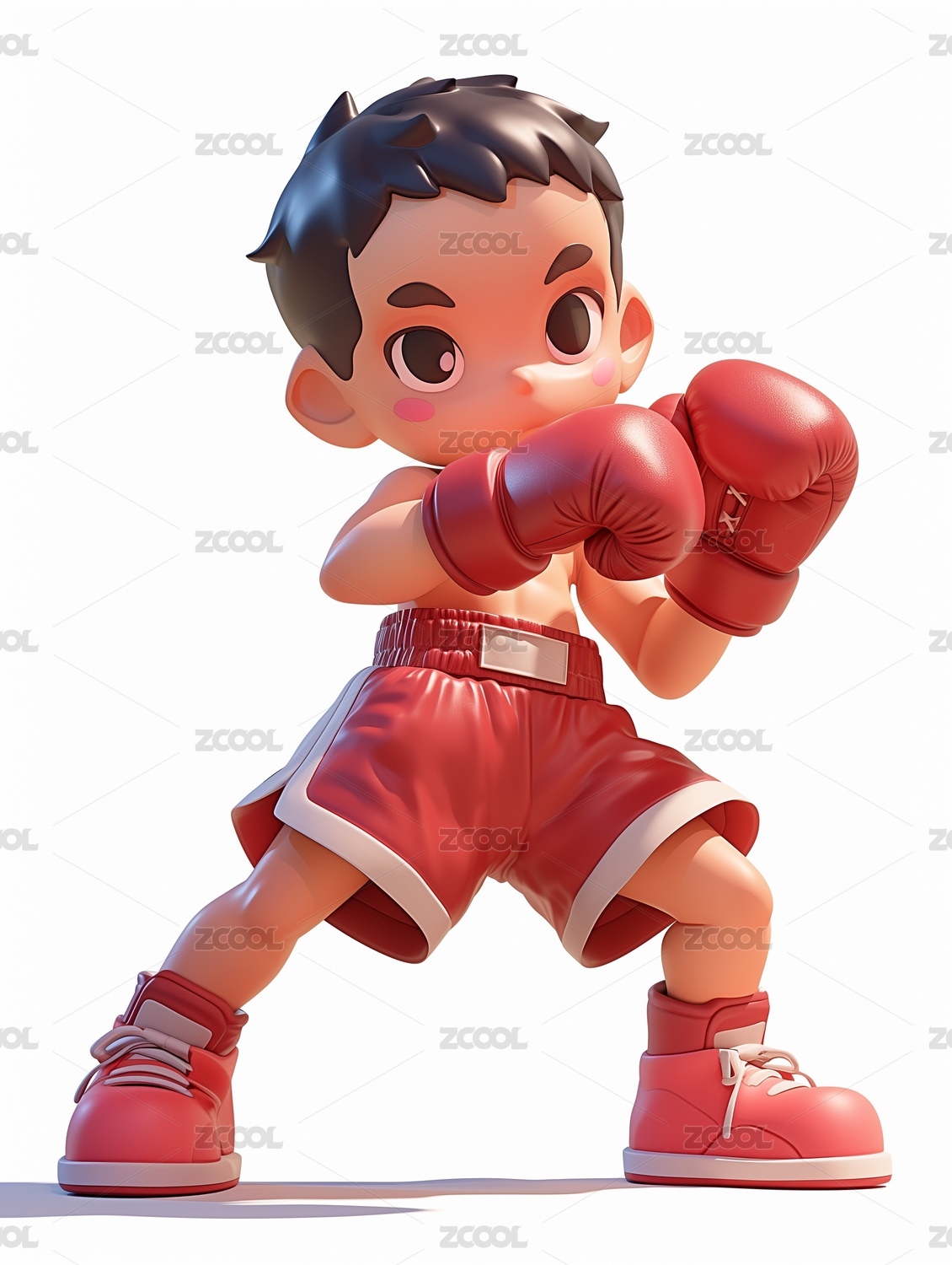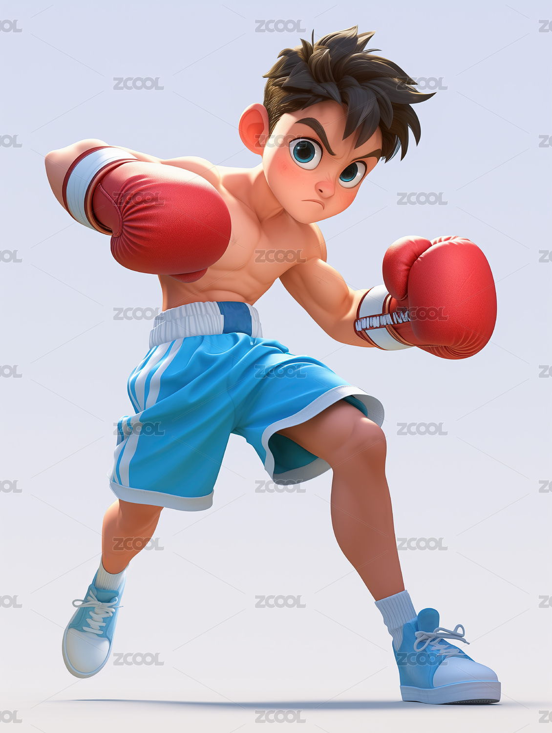 3D卡通打拳击的男孩