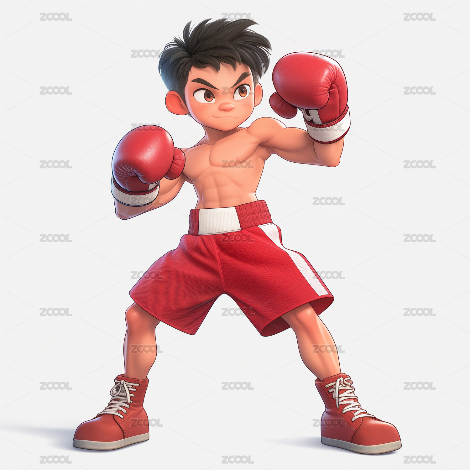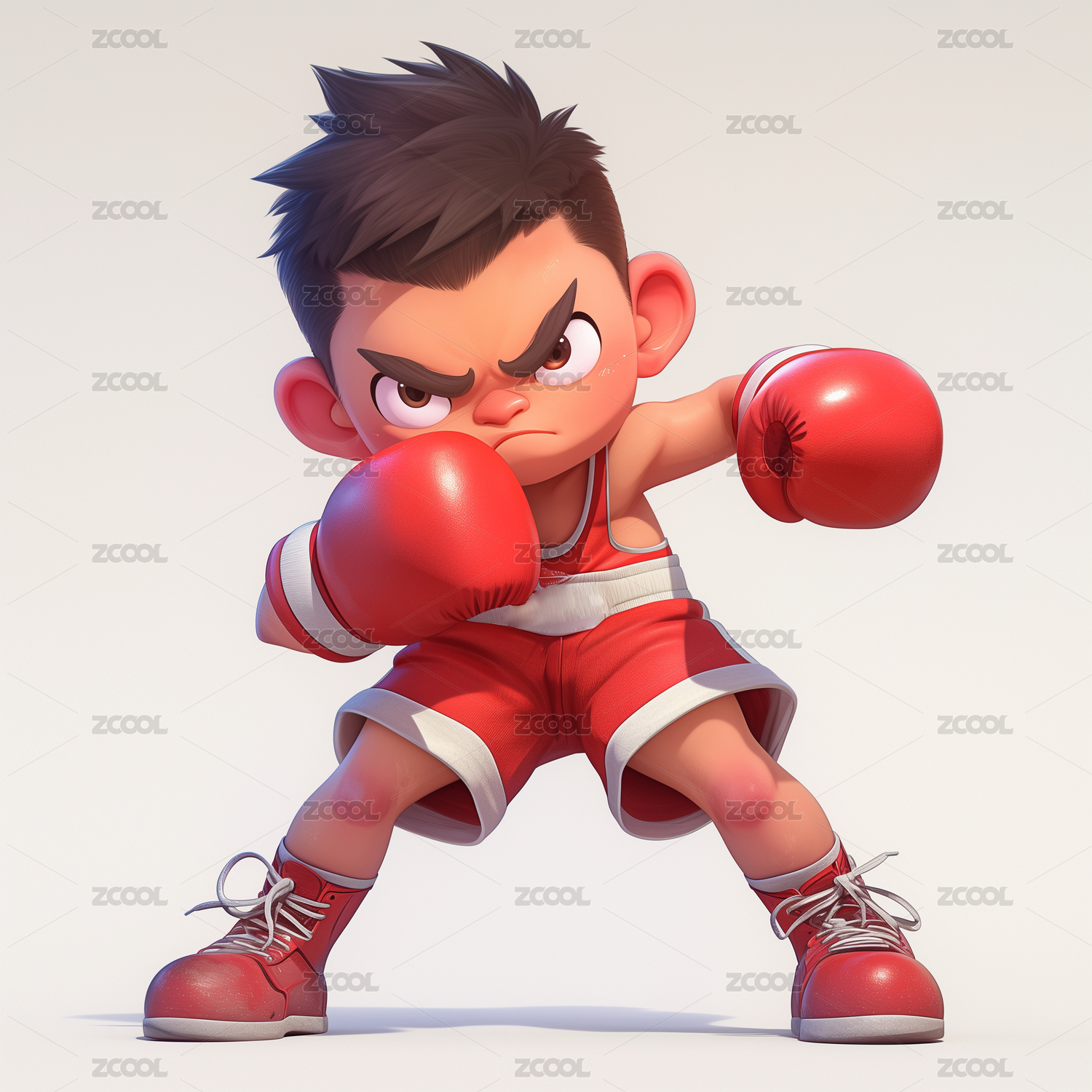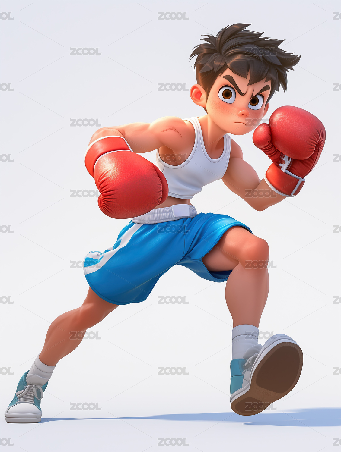 3D卡通打拳击的男孩
