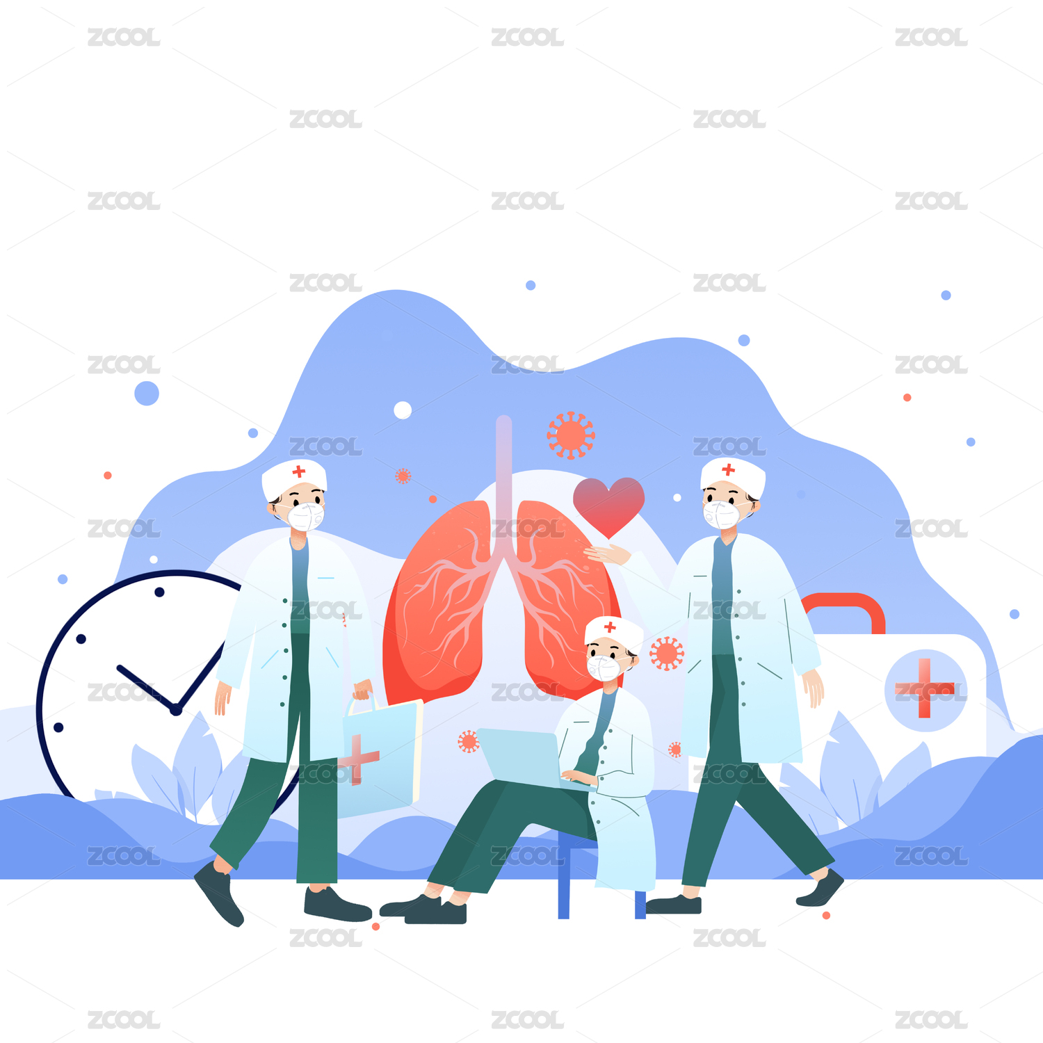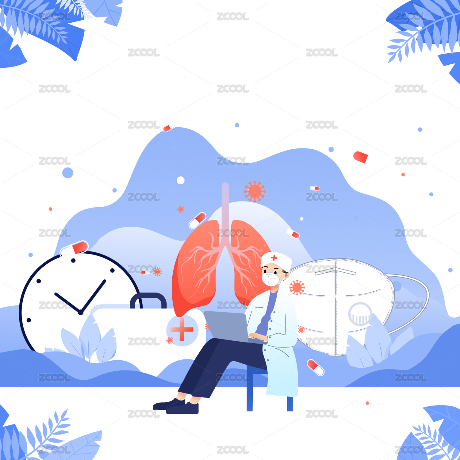 海报,插画,卡通,生机,自然,希望,口罩,预防,保护,健康