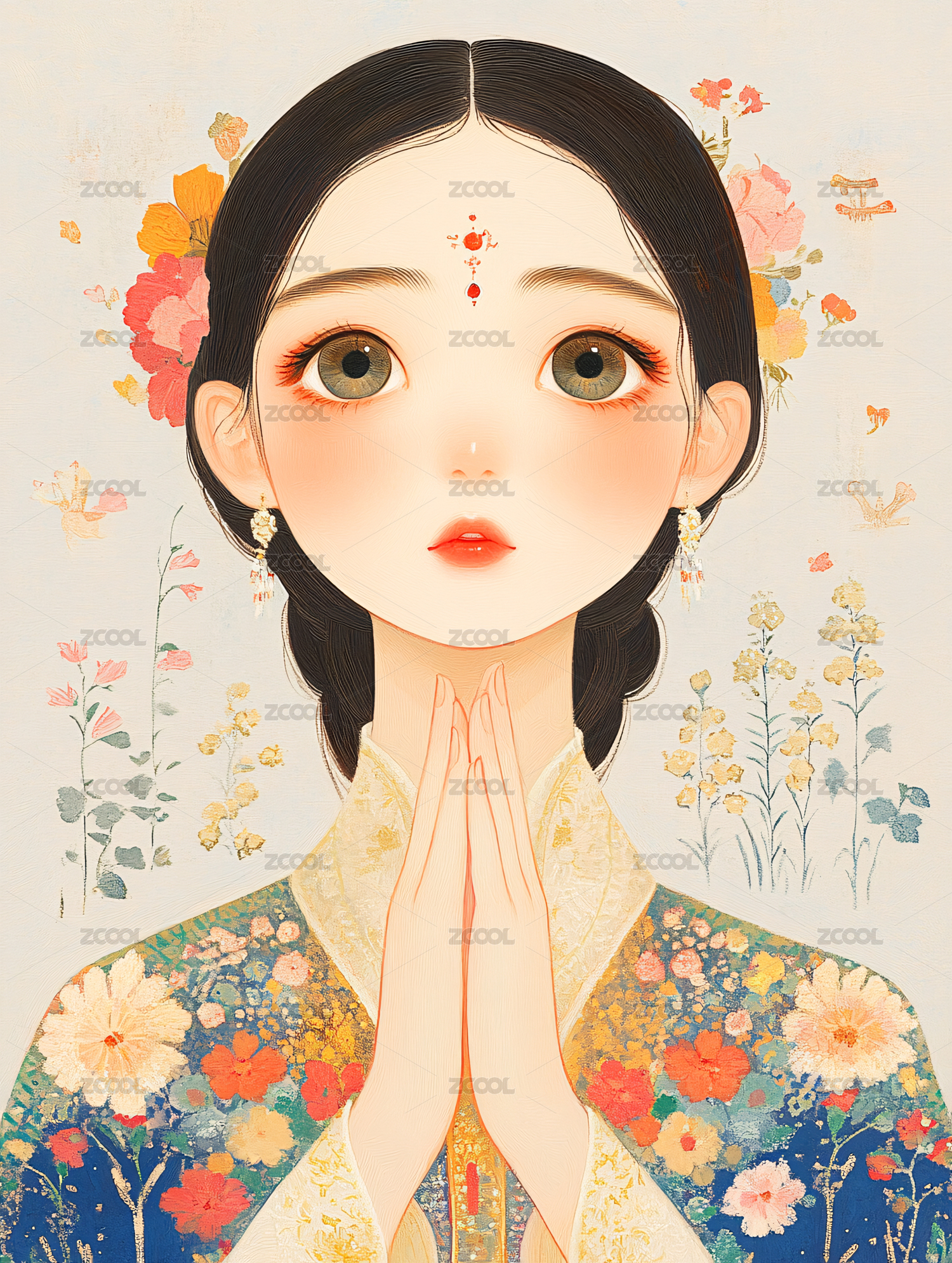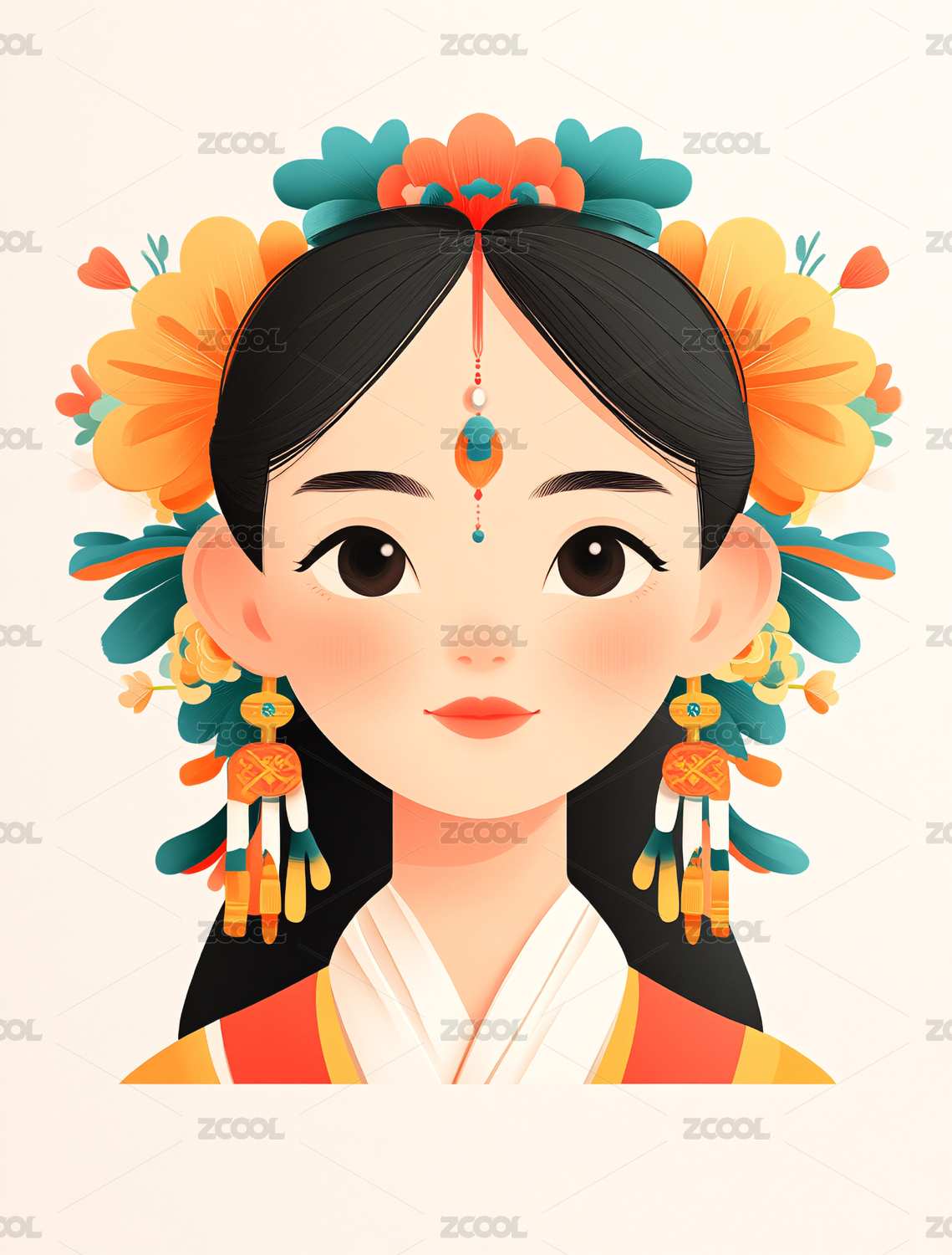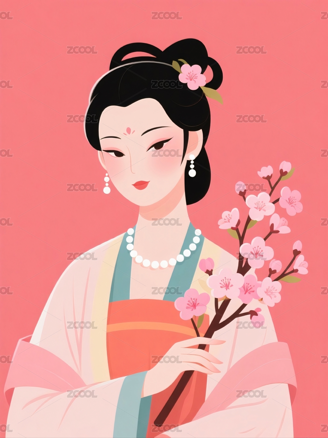 女孩,少女,半身像,花,时尚,妇女节,插画