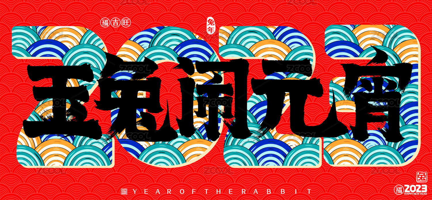 国潮兔年玉兔闹元宵2023云纹矢量书法字