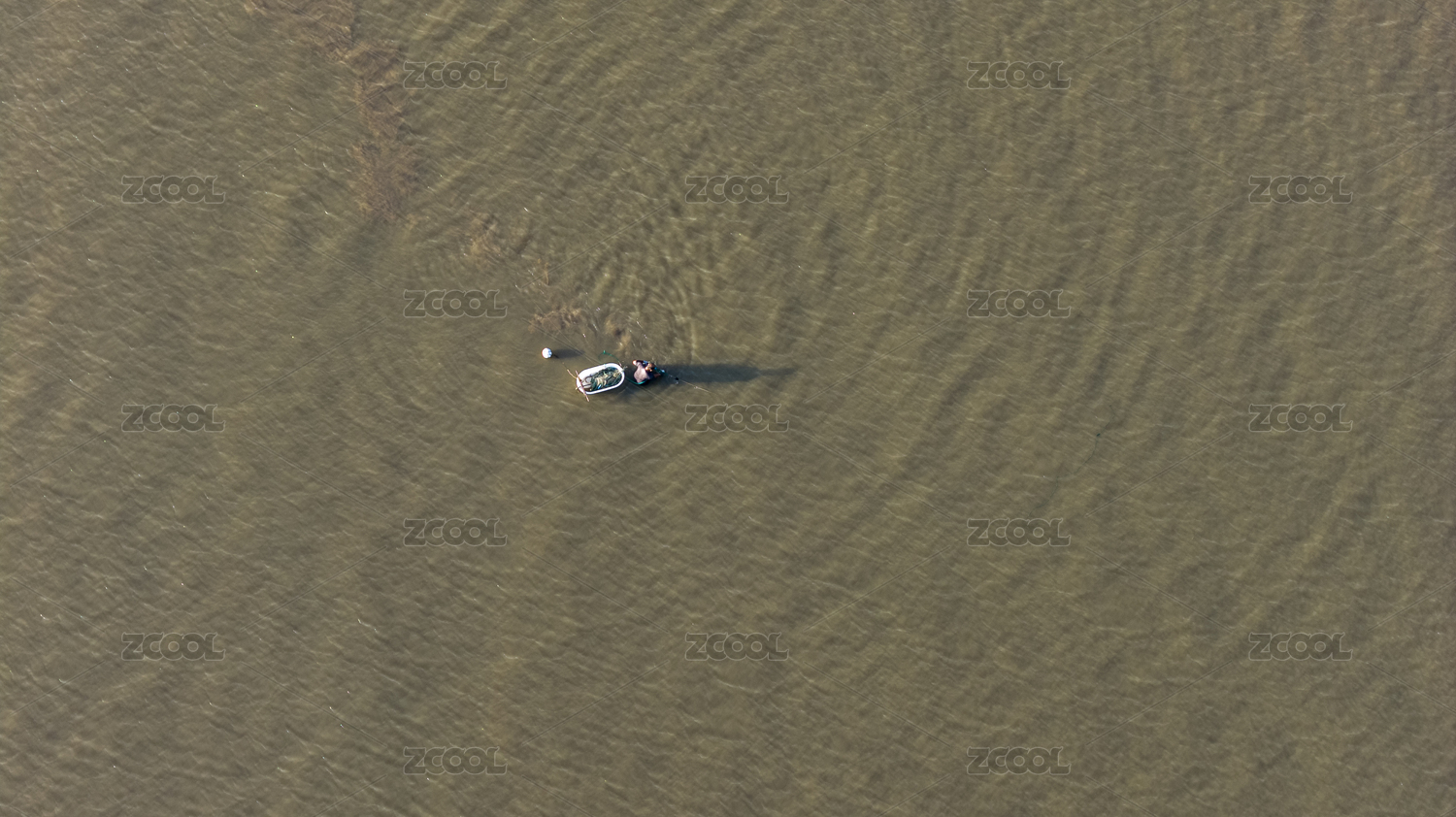 航拍绿色湖面上的一只小船