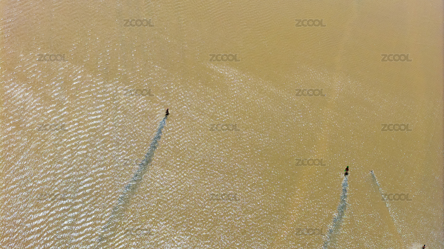 清晨海边渔民浅滩捕鱼劳作