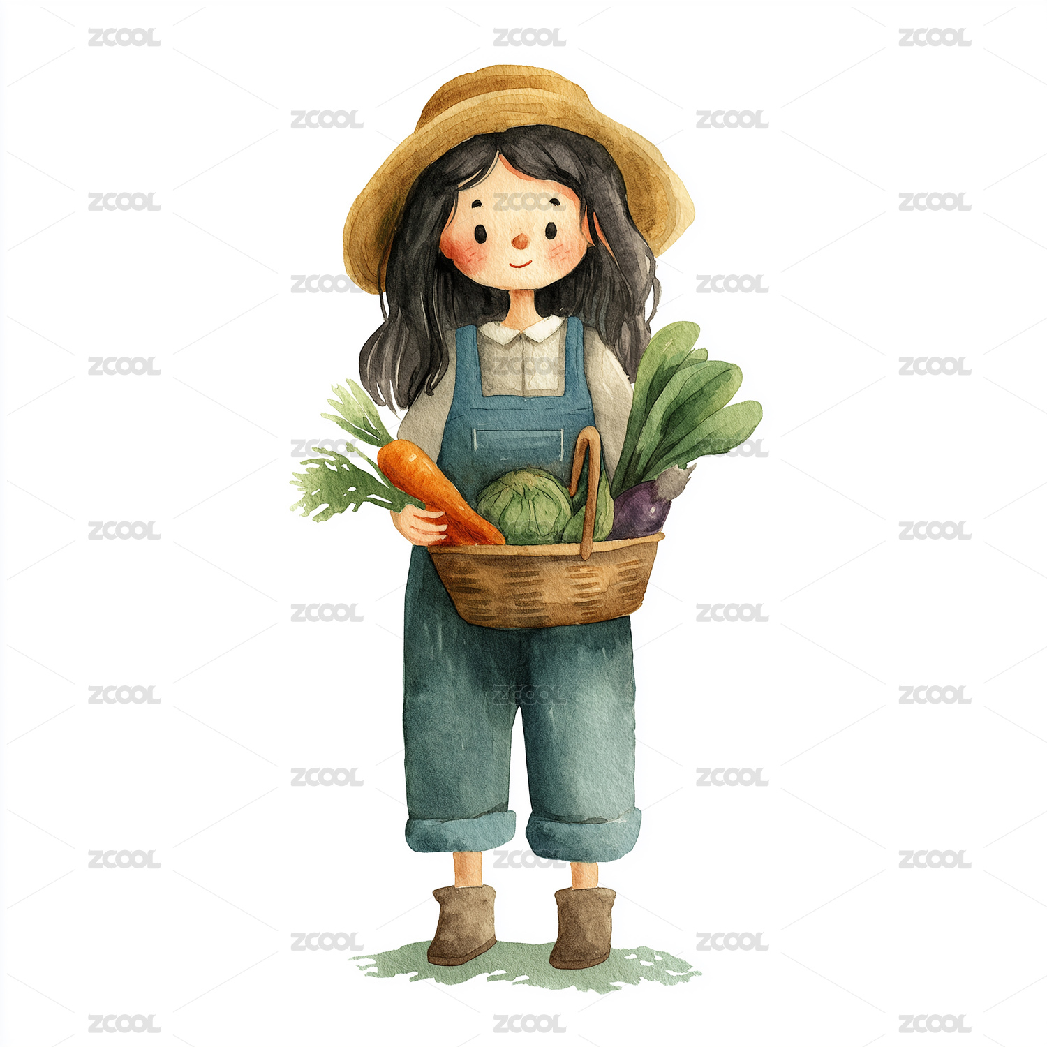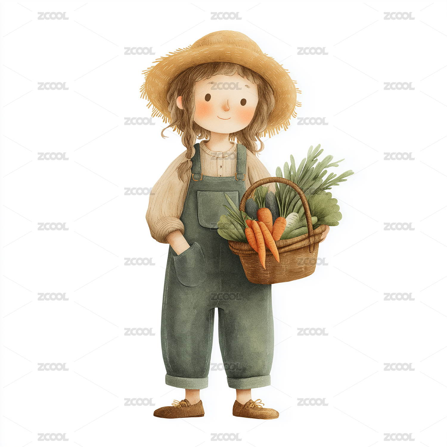 插画,卡通,食物,人物,男人,农作物,蔬菜,草帽,极简,胡萝卜