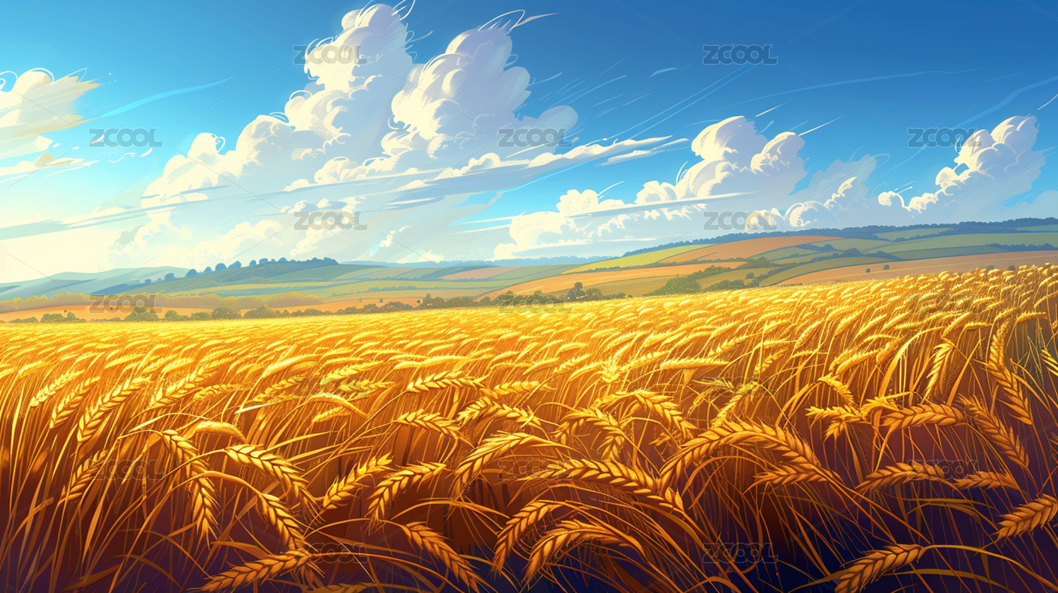 夏天金色麦田秋天节气小麦成熟秋收插画