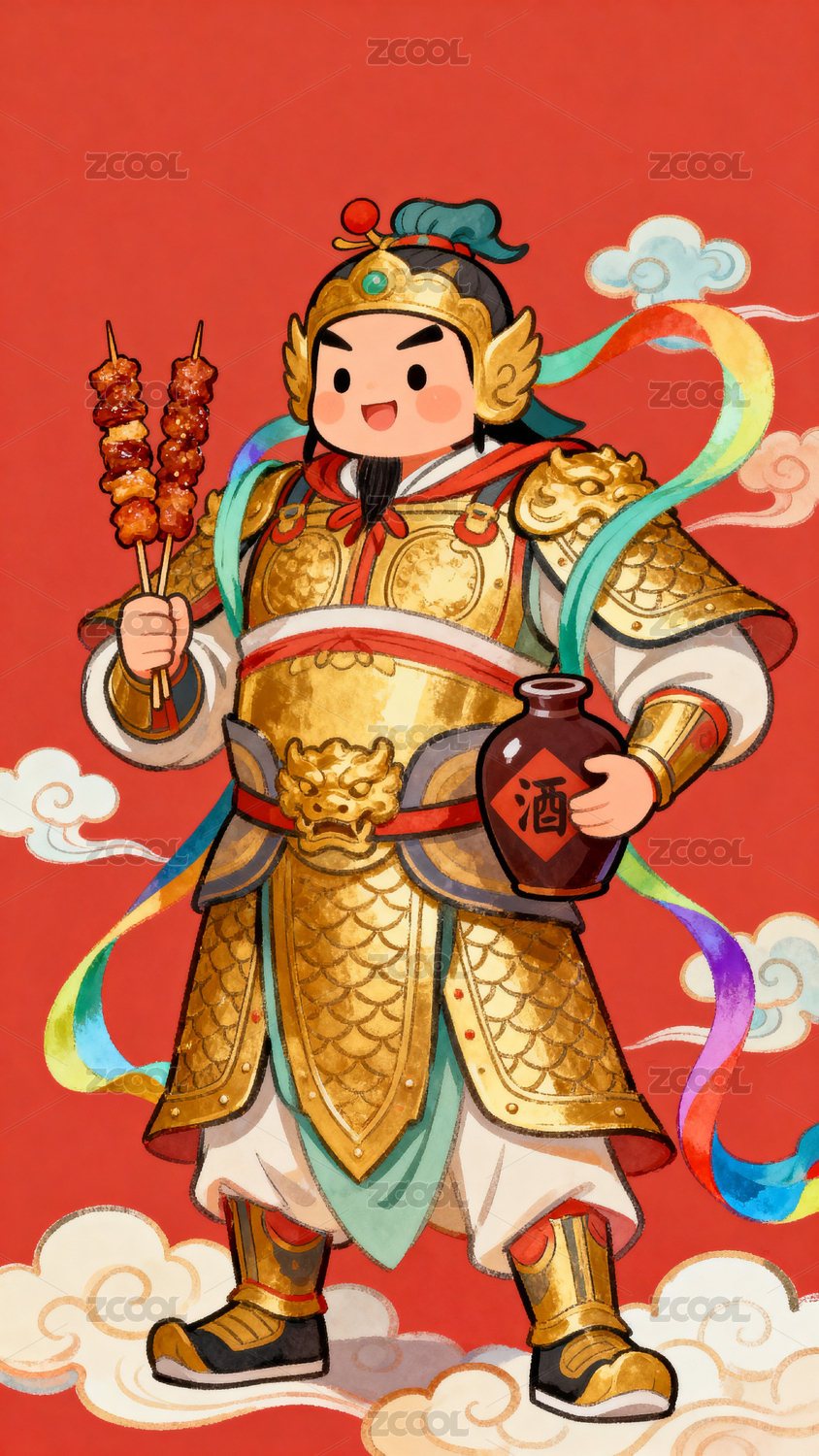 兔年年画元素风调雨顺四大天王兔南方增长天