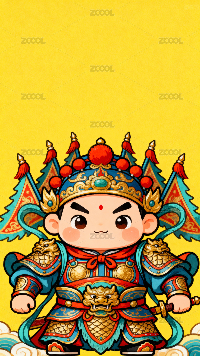 龙生九子神兽拟人狴犴铠甲扛旗帜国潮风