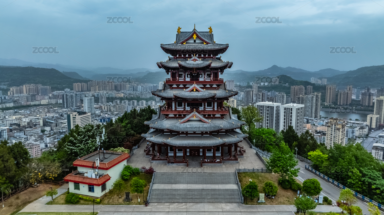 中国四川省巴中市南龛山飞霞阁园林建筑