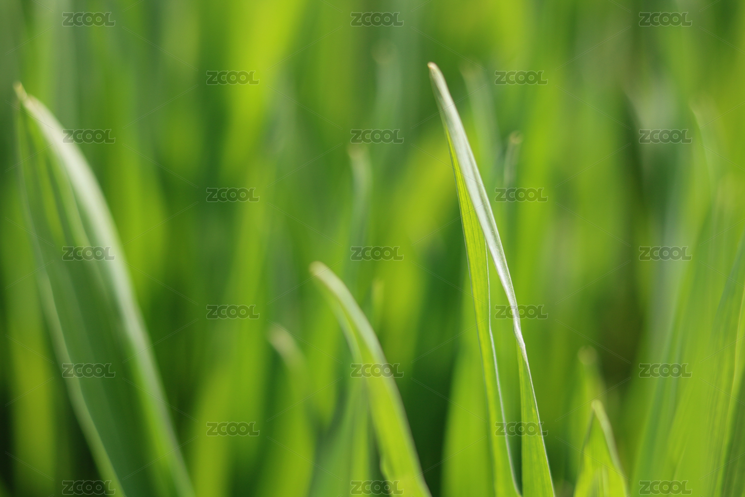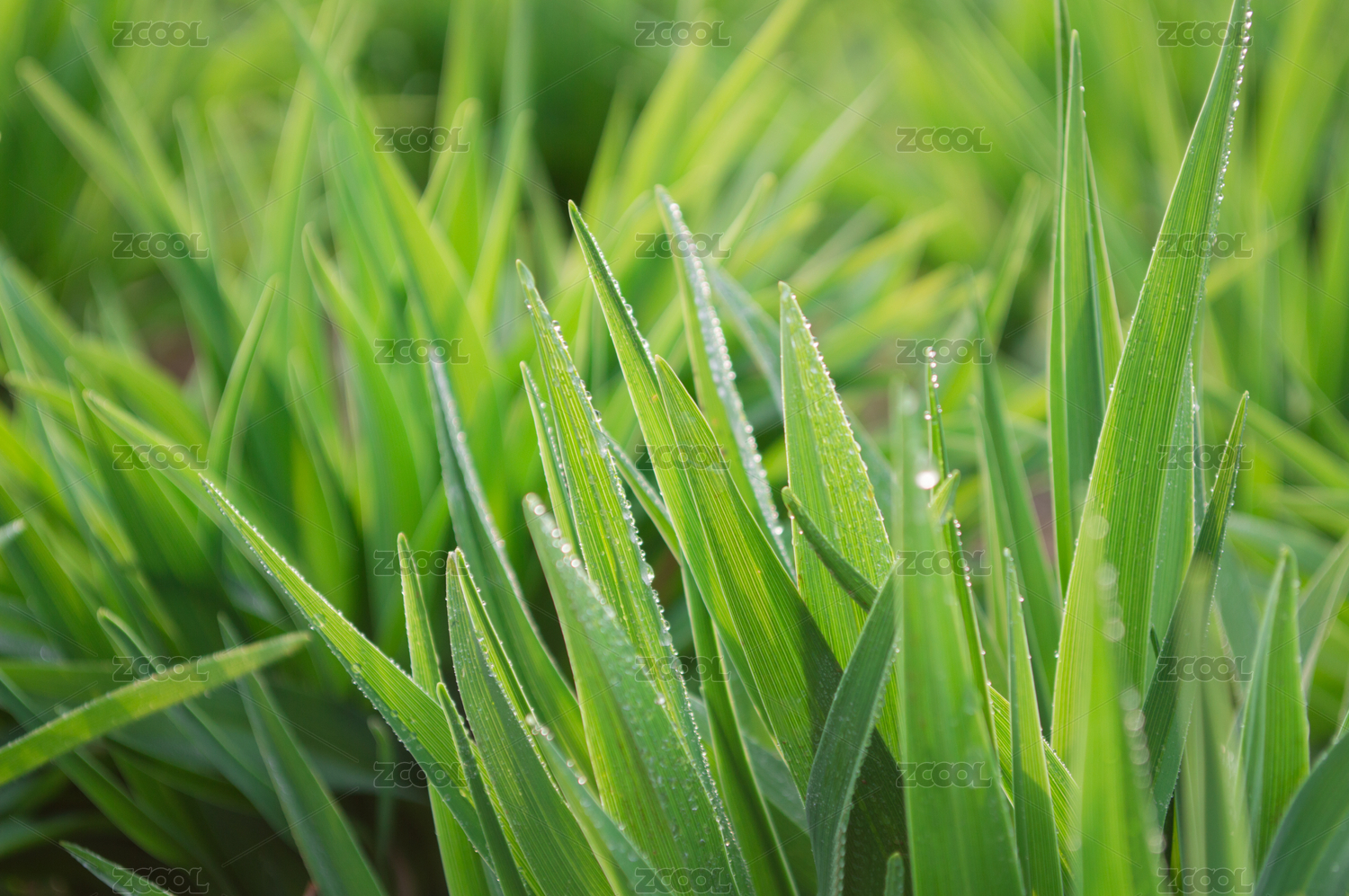 早晨,太阳下一大片绿色有机庄稼小麦苗