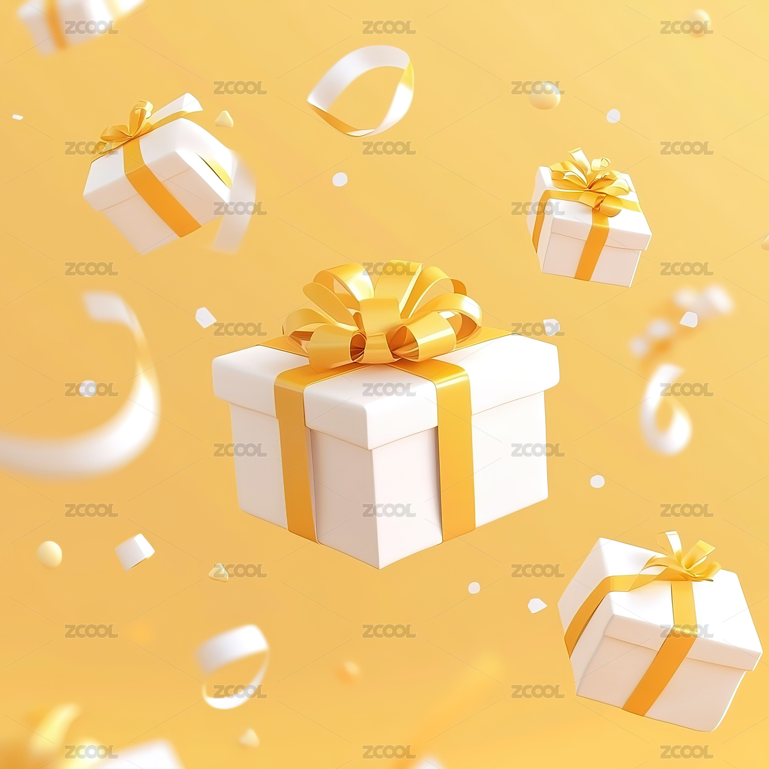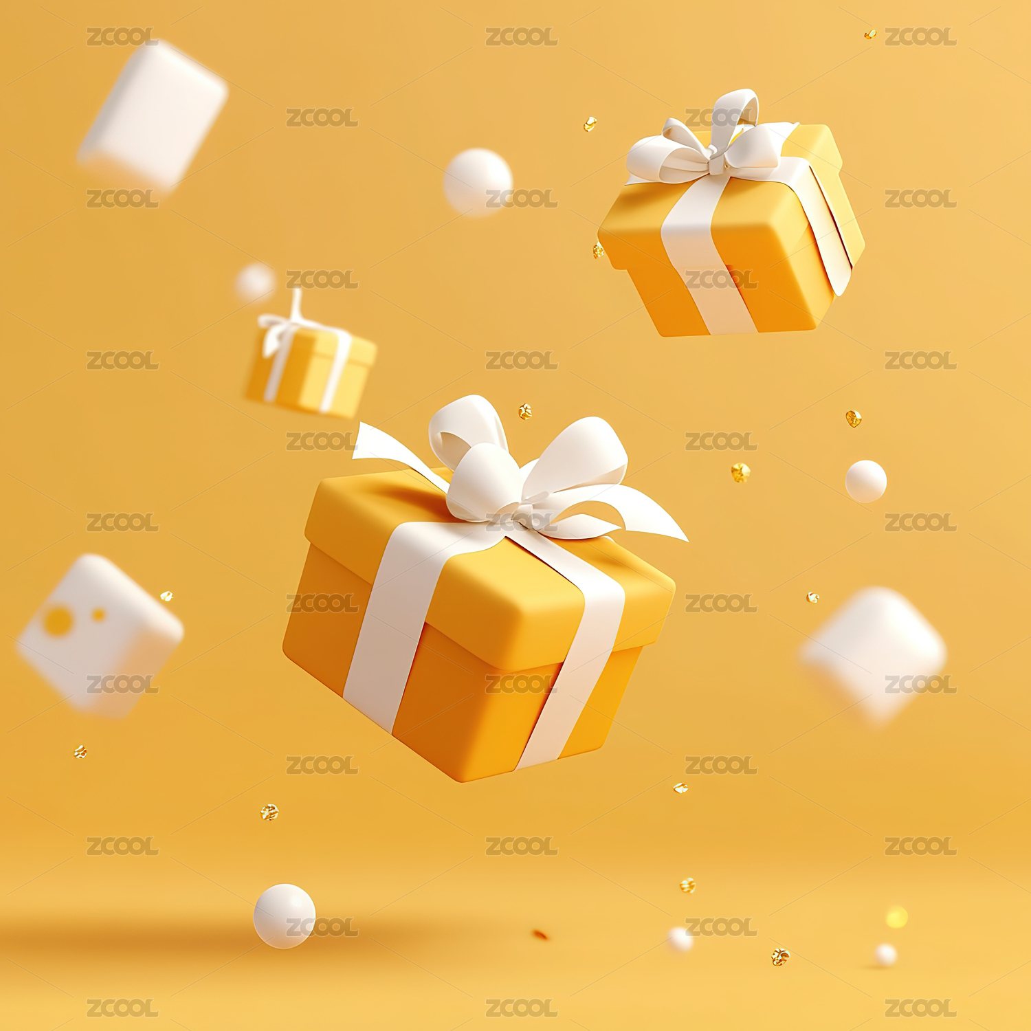 橙色礼盒礼物阵列平铺元素堆3D活动场景