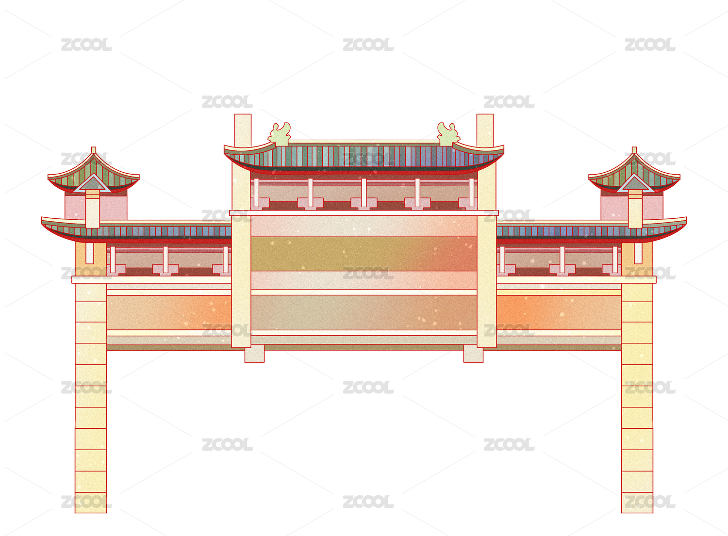 中式传统古建筑插画素材