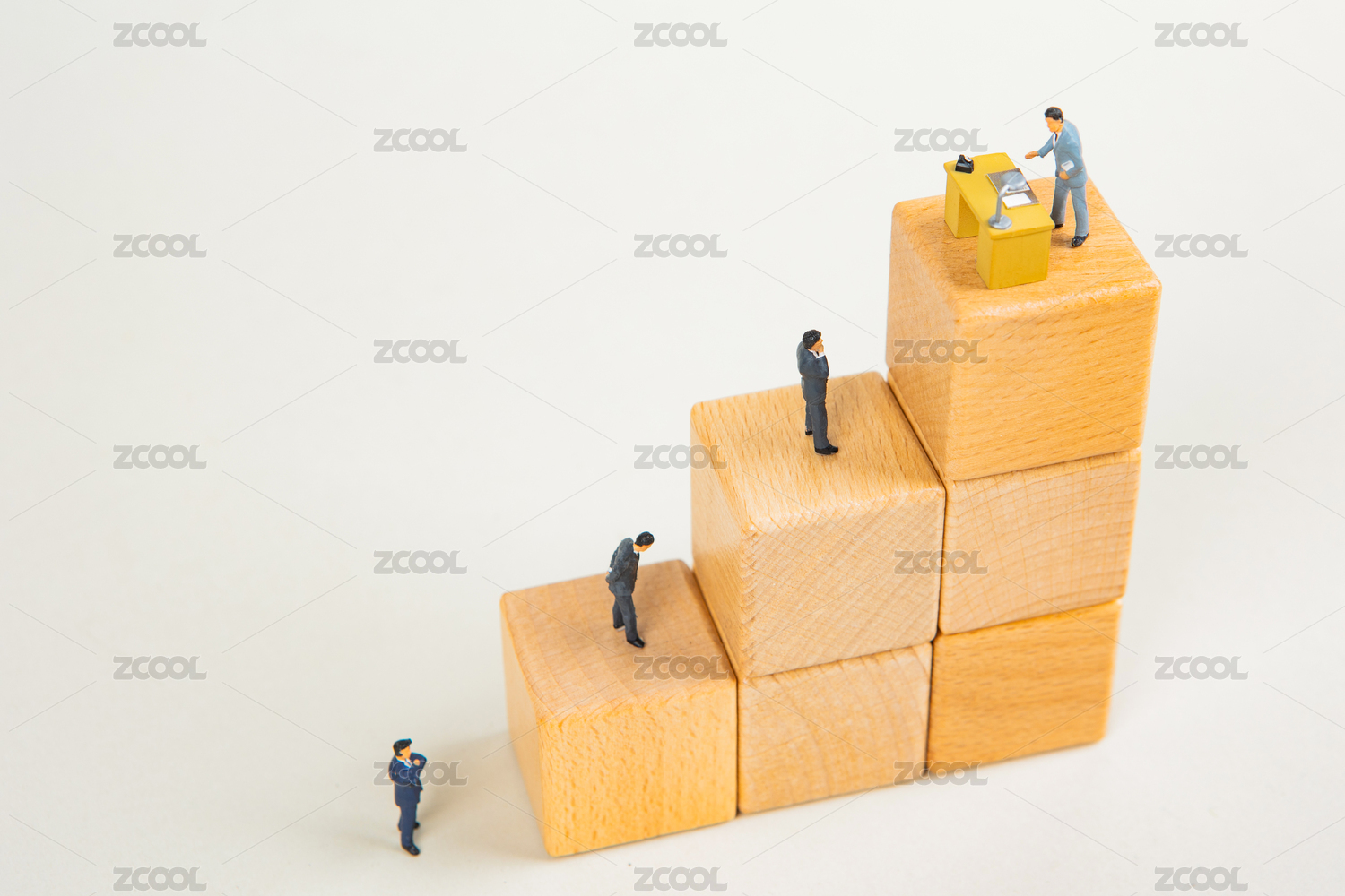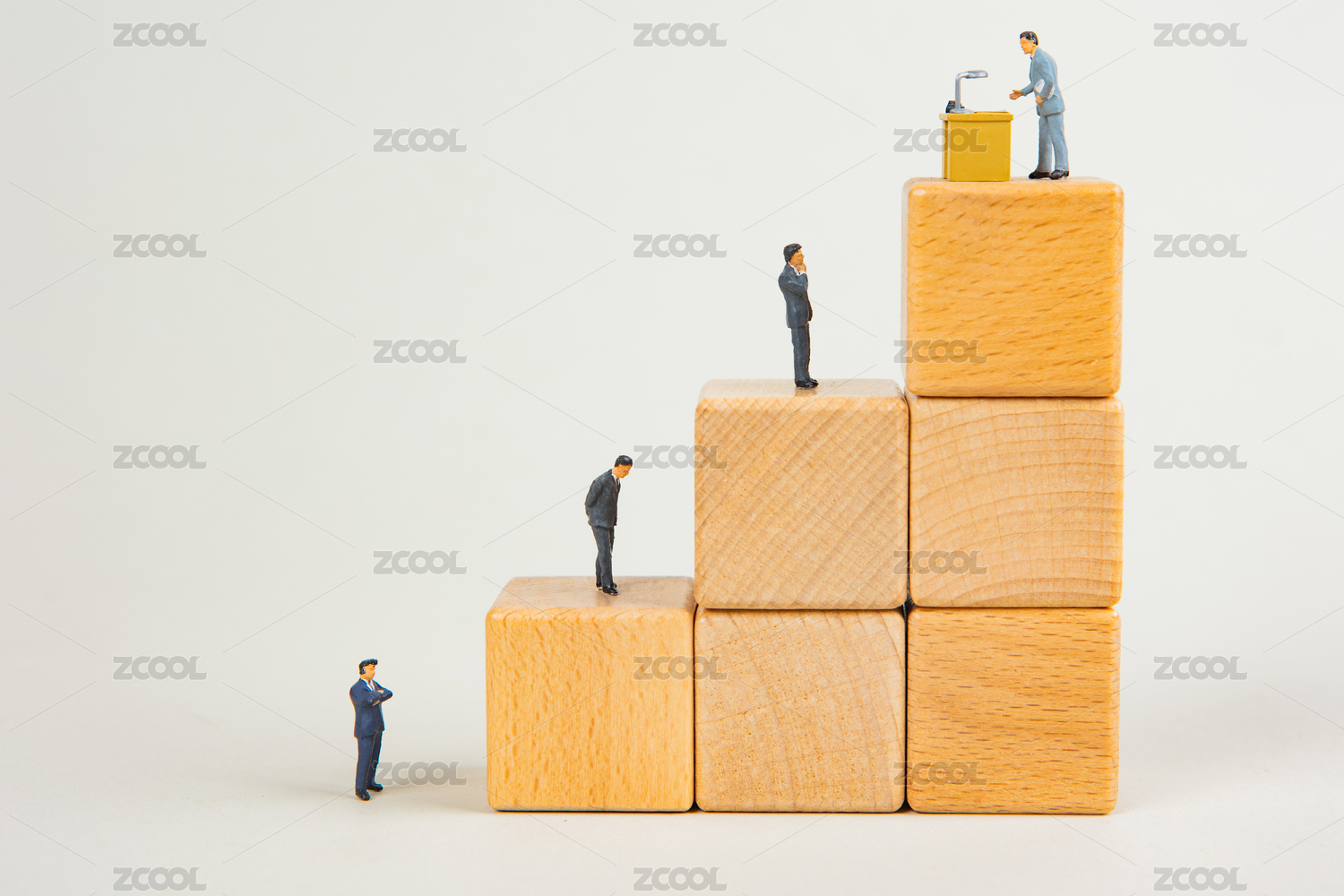 人群站在积木阶梯上