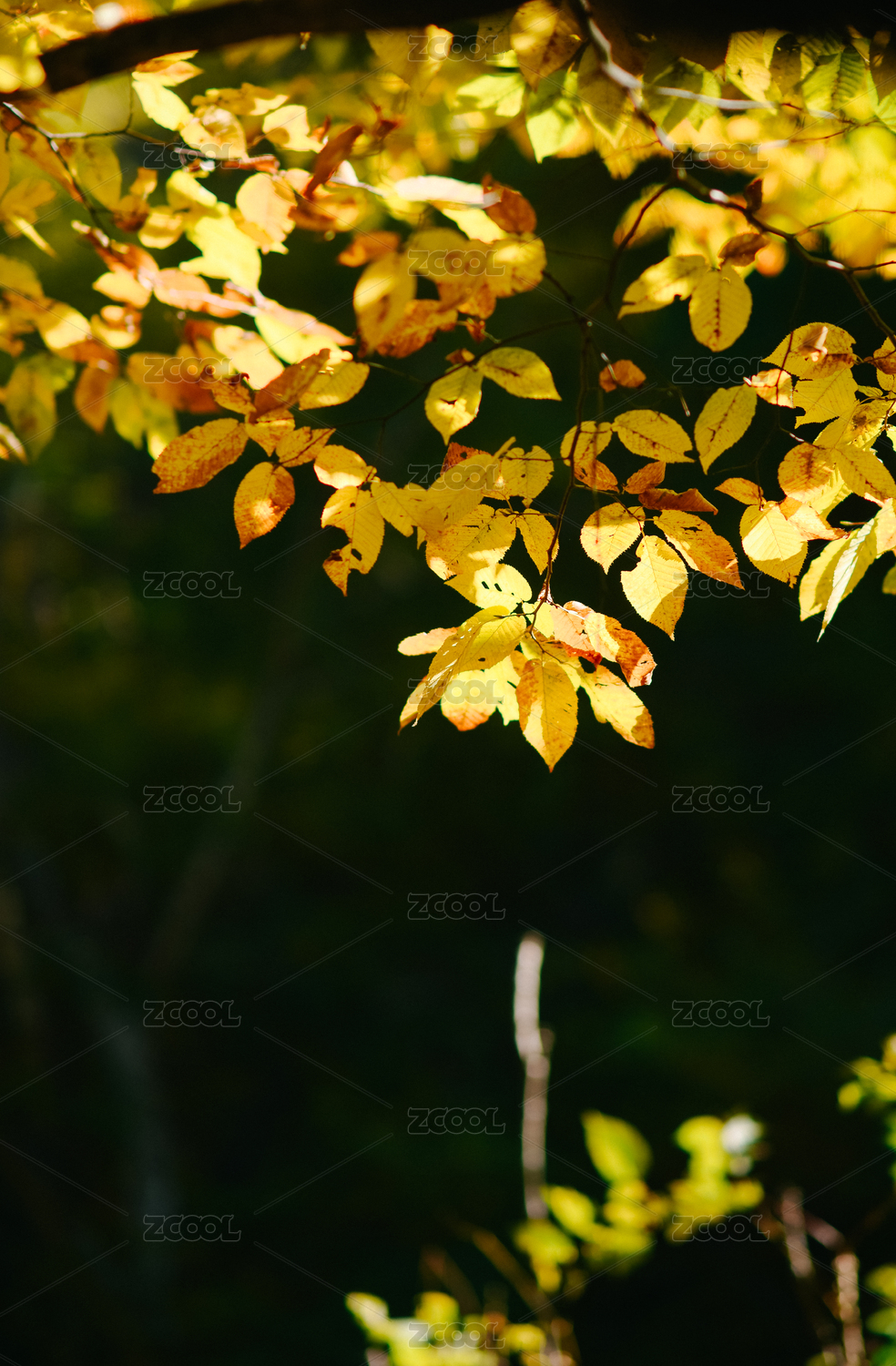 阳光下满画幅秋天金黄色树叶叶子的自然风景