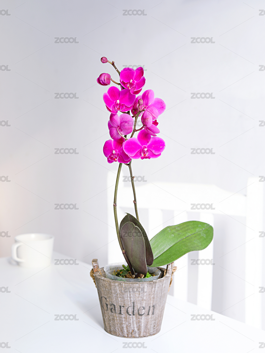 桌面上摆放着的盆栽鲜花蝴蝶兰