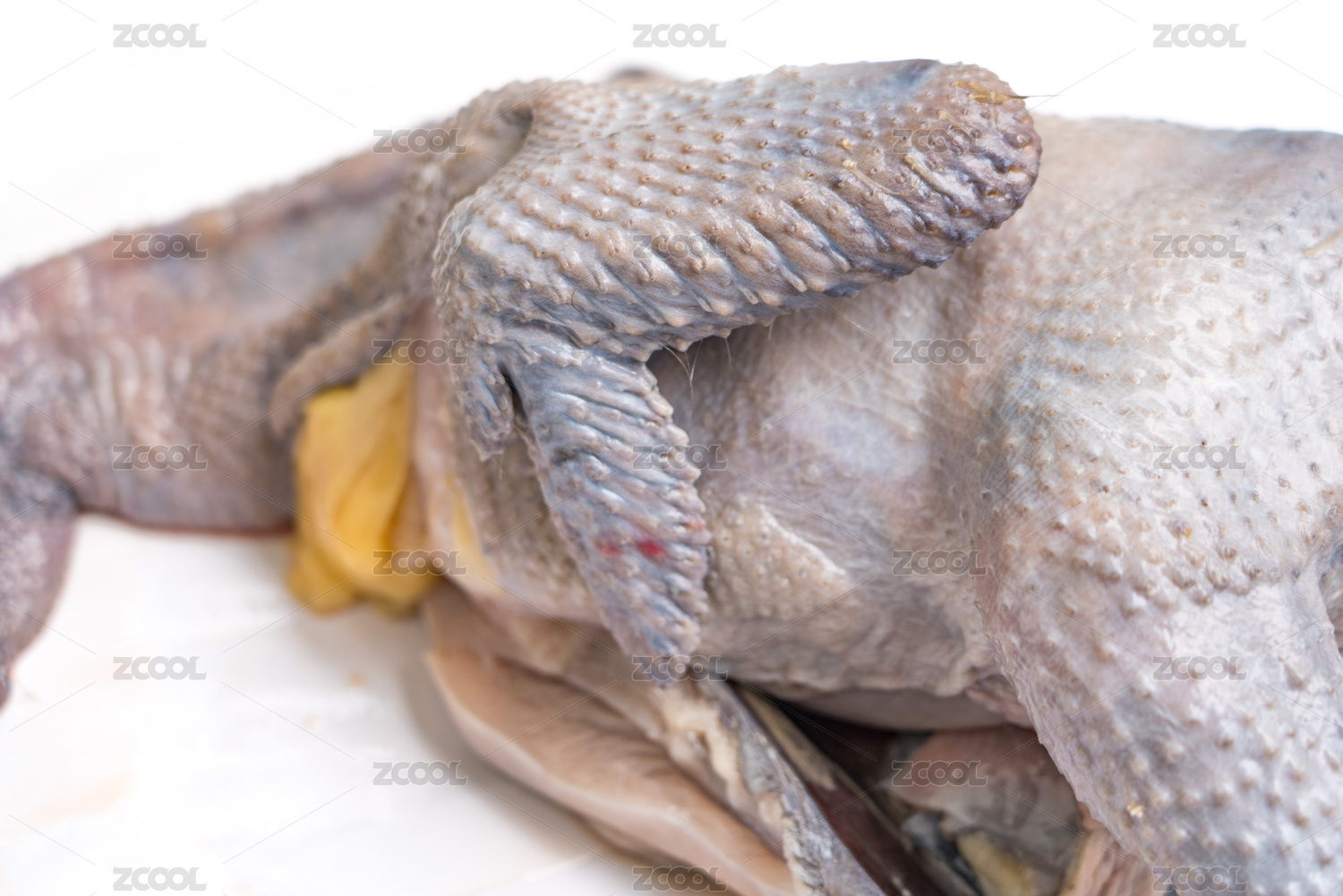 白色背景下拔毛后的母鸡