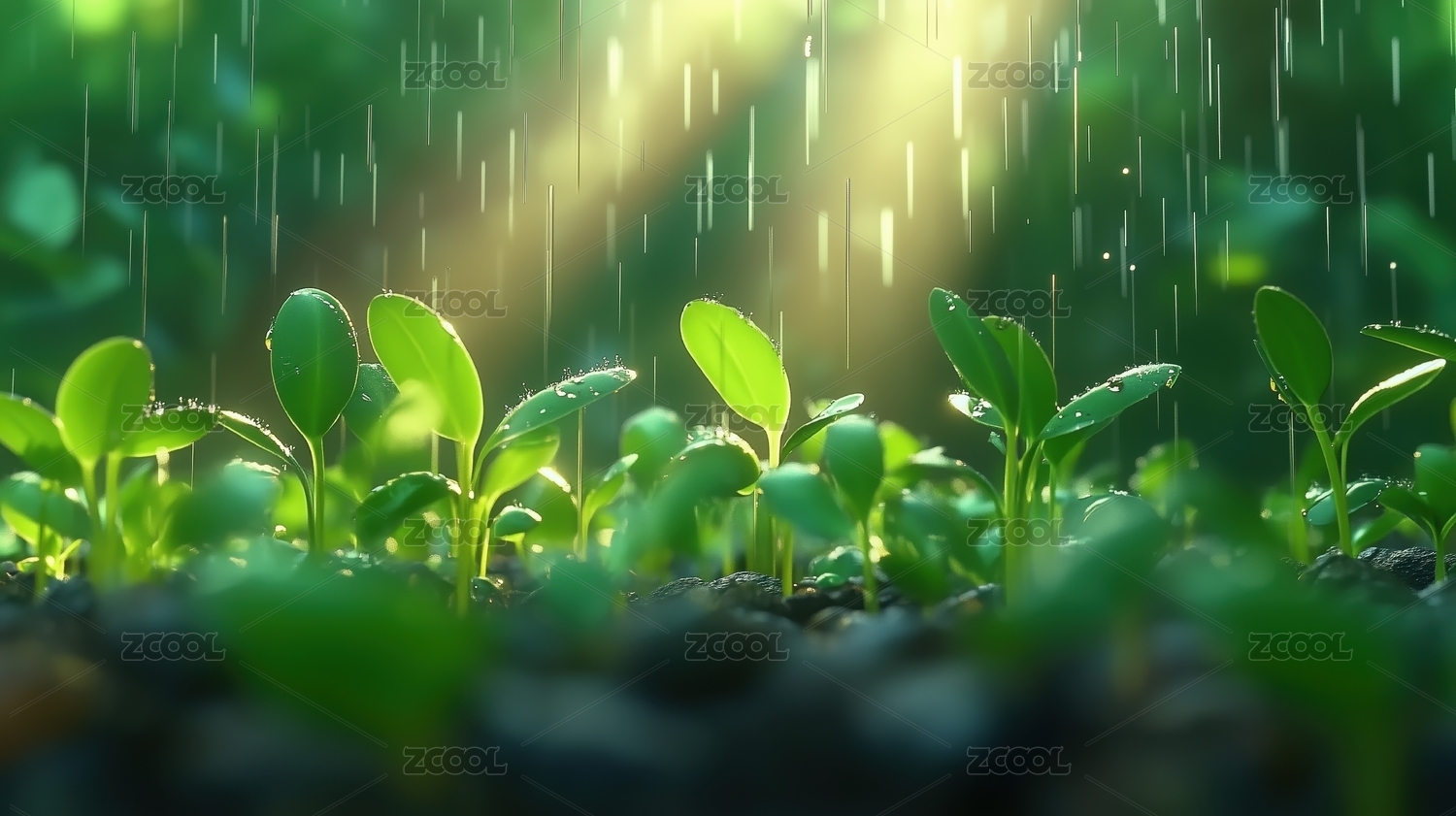 春天雨水节气谷雨种子长出幼苗嫩芽概念插图