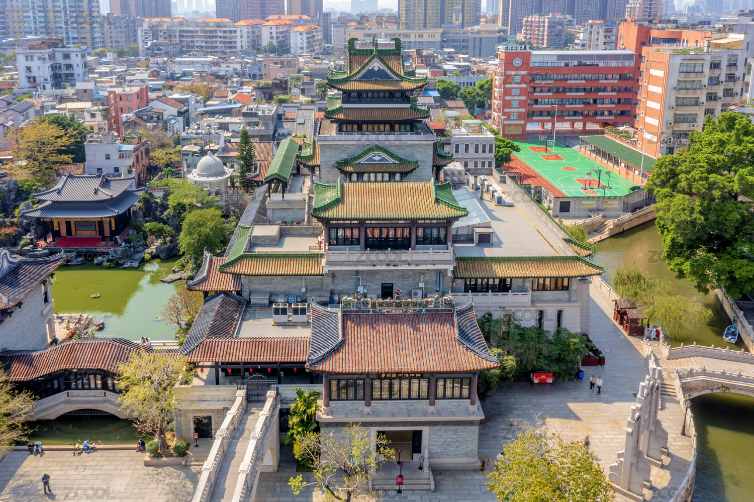 中国广东广州永庆坊粤剧艺术博物馆航拍风光
