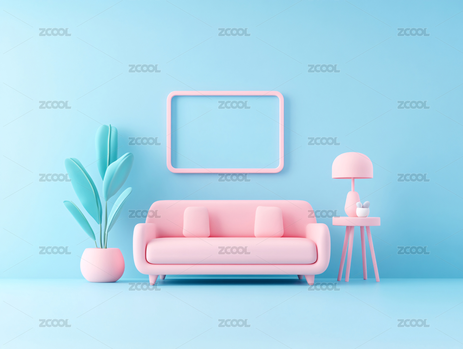 室内客厅3D温馨卡通风格三维渲染概念背景