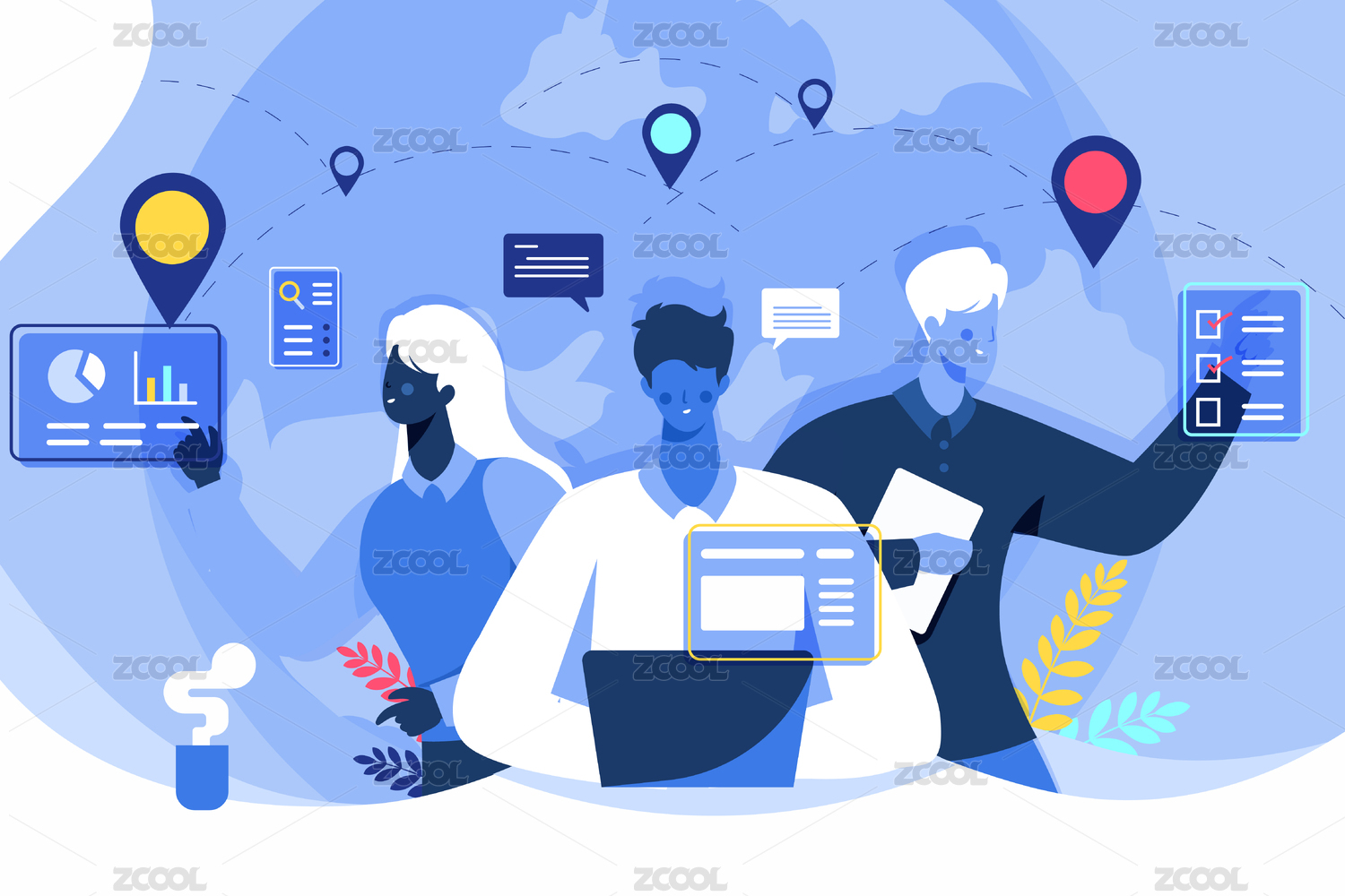 为追赶进度的伙伴加油2,扁平矢量人物场景创意概念插画