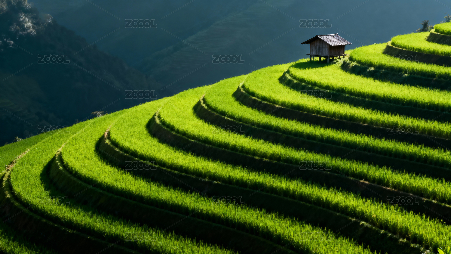梯田风光小屋静谧自然