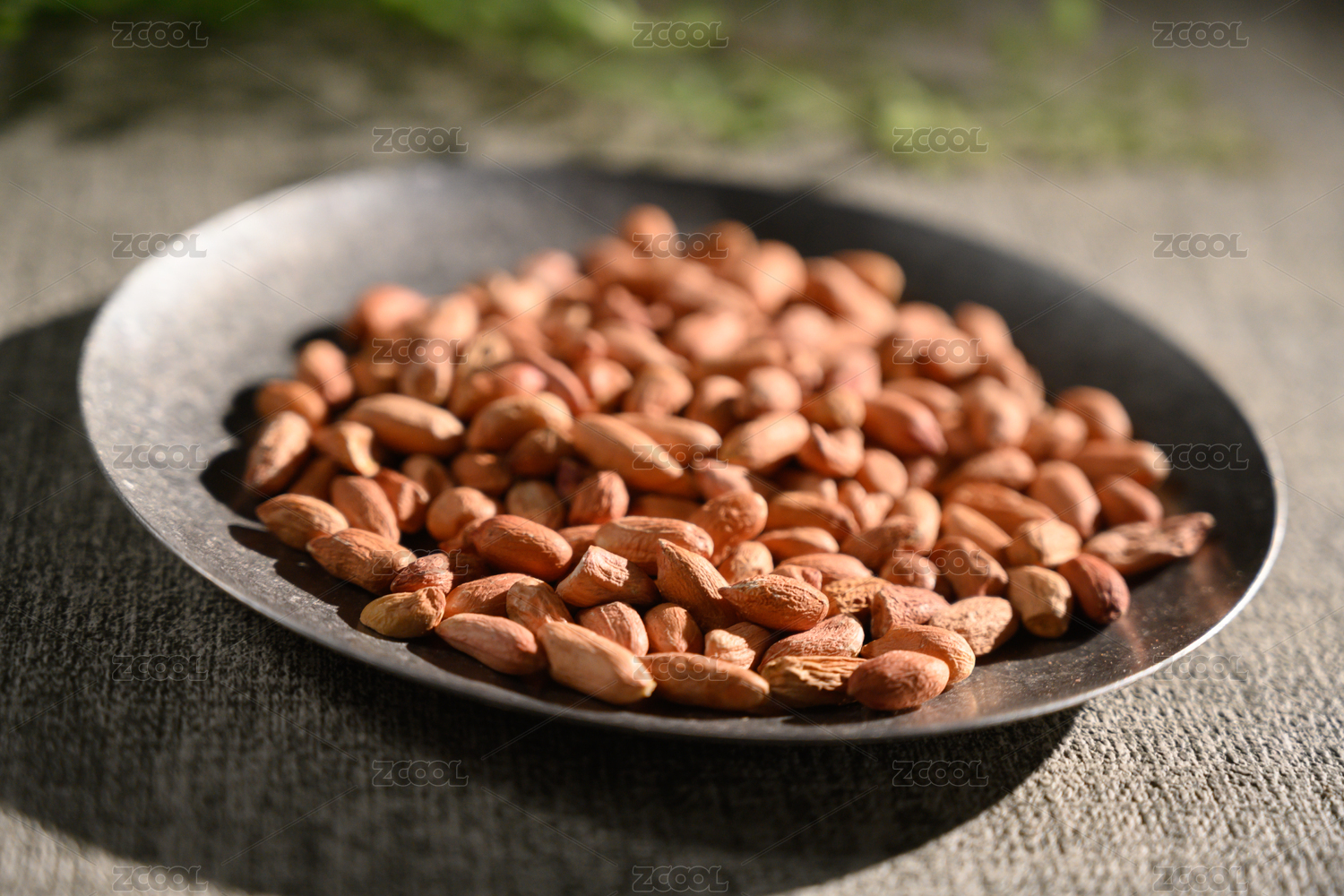 桌面上的盘子里的美味可口的皱皮花生