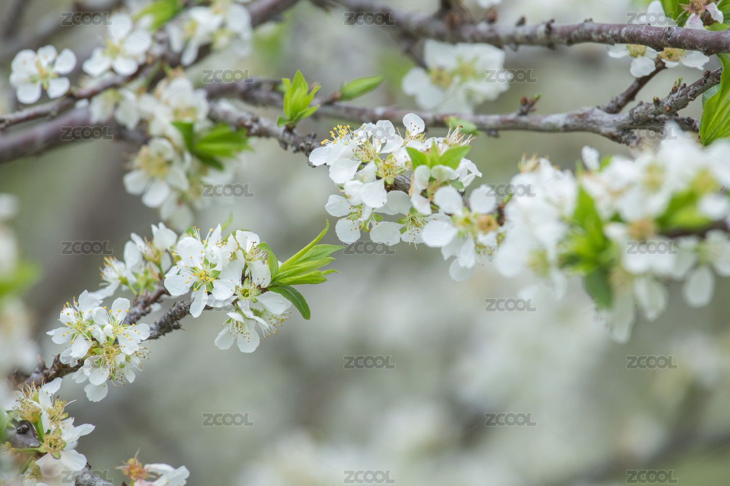 春日田园里盛开的白色李花