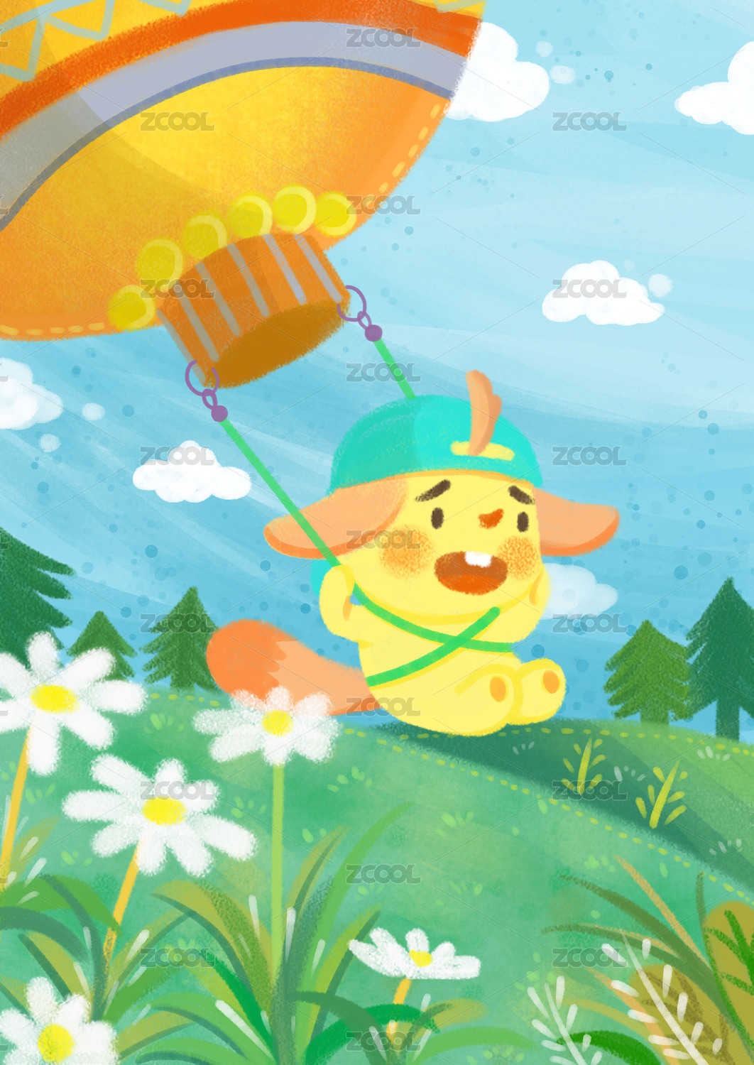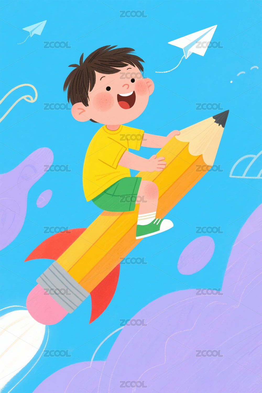 六一儿童节男孩开飞机插画快乐童年活动海报