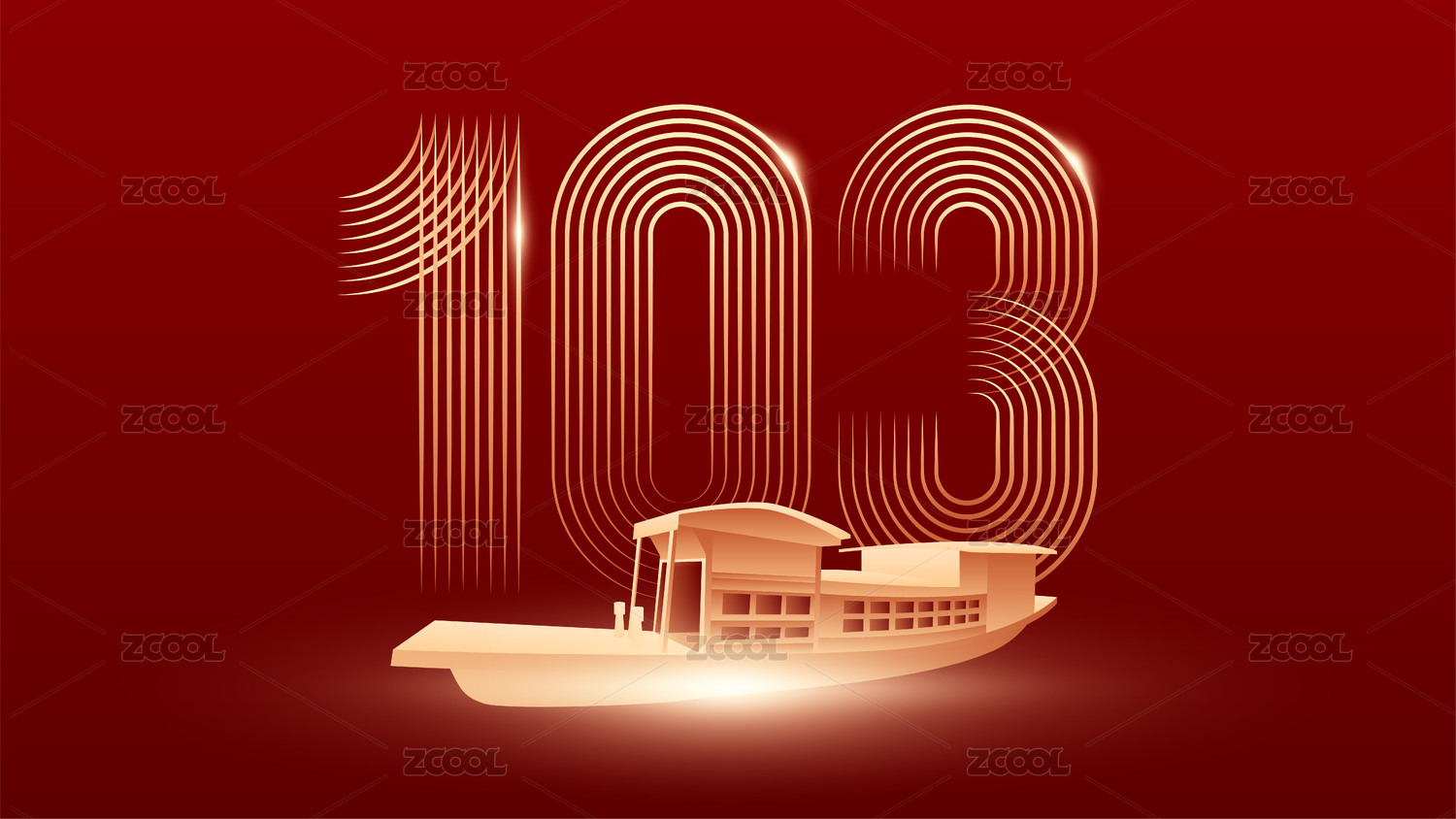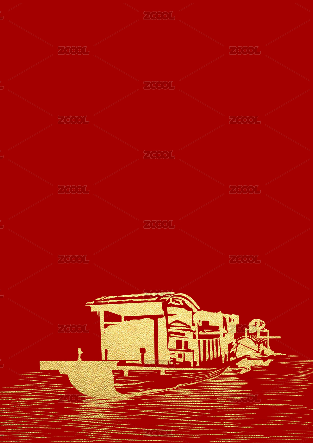 红船精神版画风格印花部分金箔效果