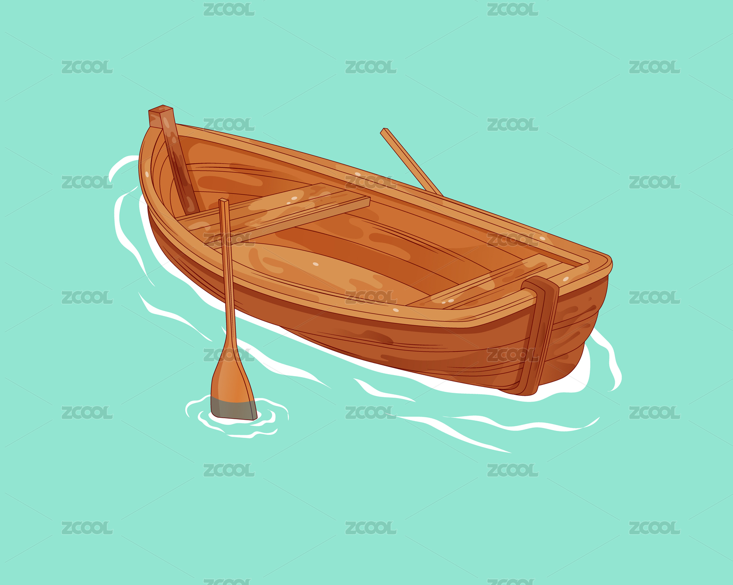卡通手绘绿色游轮轮船插画