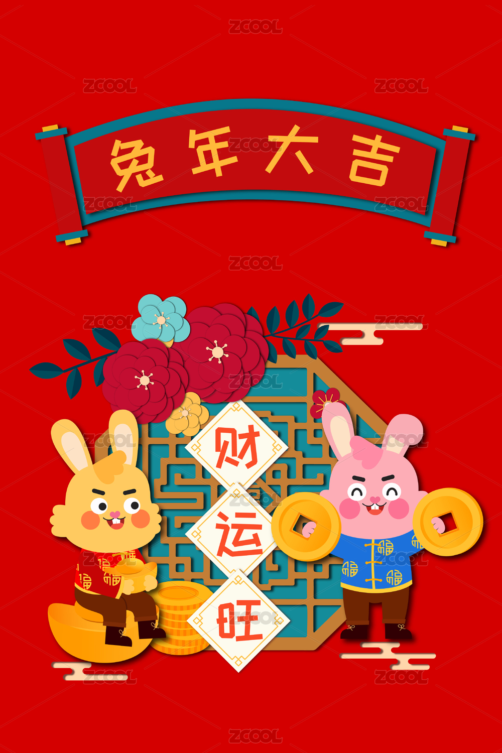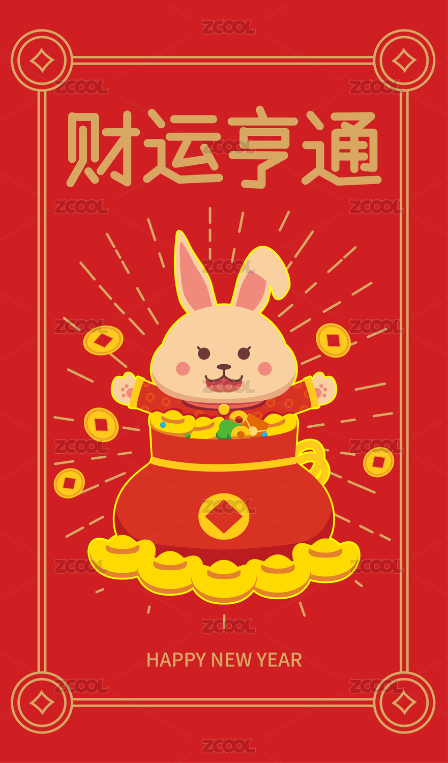 2020新年 鼠年祝福插画Banner封面海报素材 好运